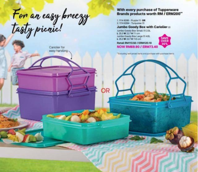 💥Ready Stock💥Tupperware Jumbo Goody Box with Cariolier - Pink Set Or Blue Set