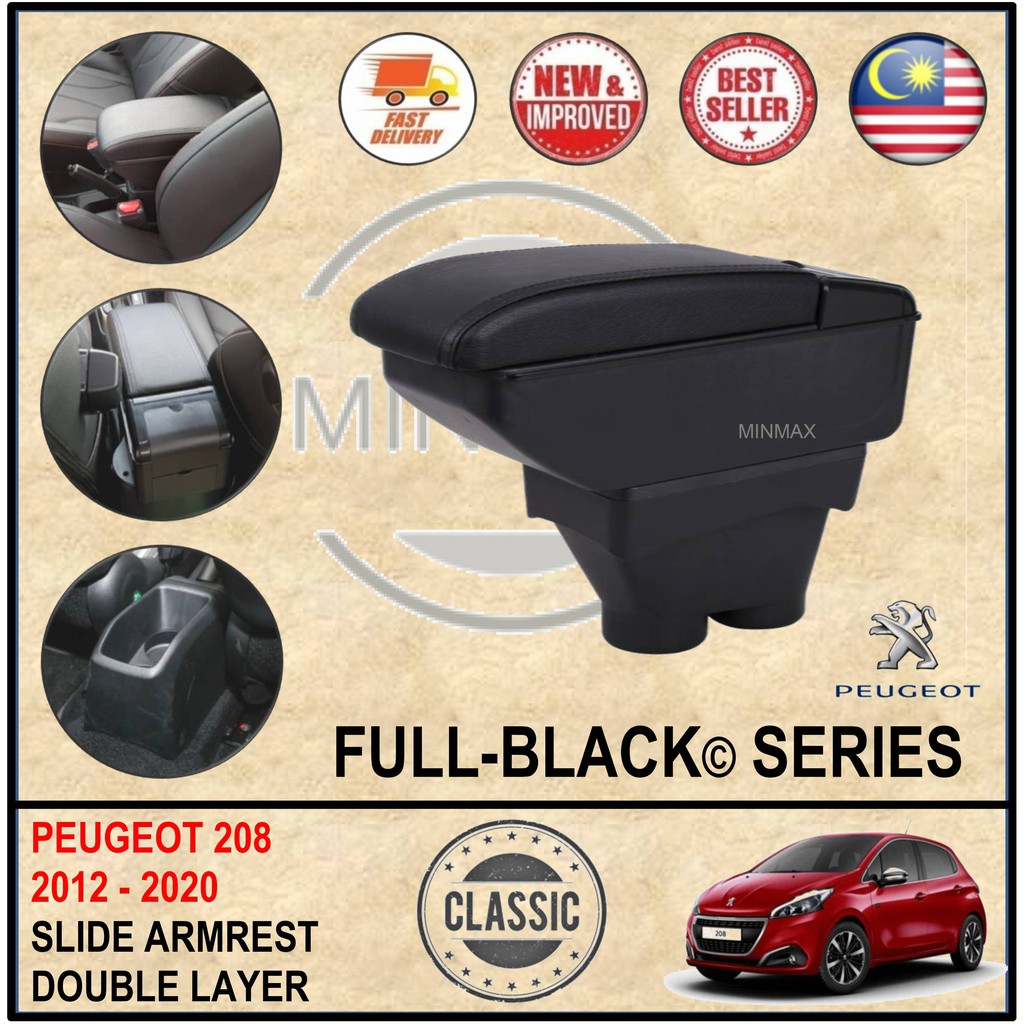 𝗙𝘂𝗹𝗹-𝗕𝗹𝗮𝗰𝗸© Peugeot 208 2012/20 Double Layer Armrest Extendable Console ( Classic All Black Arm Rest )