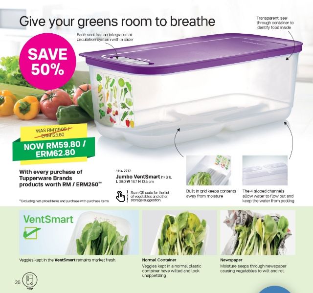 💥Ready Stock💥Tupperware FridgeSmart Large 4.6L- 1 Unit (Light Blue)
