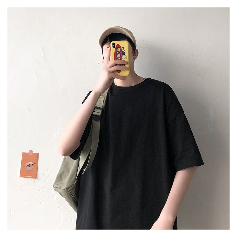 🇲🇾Malaysia Spot COD OOTD Baju cotton lelaki Oversized T-shirt Men T恤上衣男 Man Baju T Shirt Lelaki Oversize 100% Cotton Korean Style tee Men elbow half sleeve Tshirt Men Plain Basic Casual Short Sleeve Round Neck Drop sleeve fake Two-Piece T-Shirt 衣服男