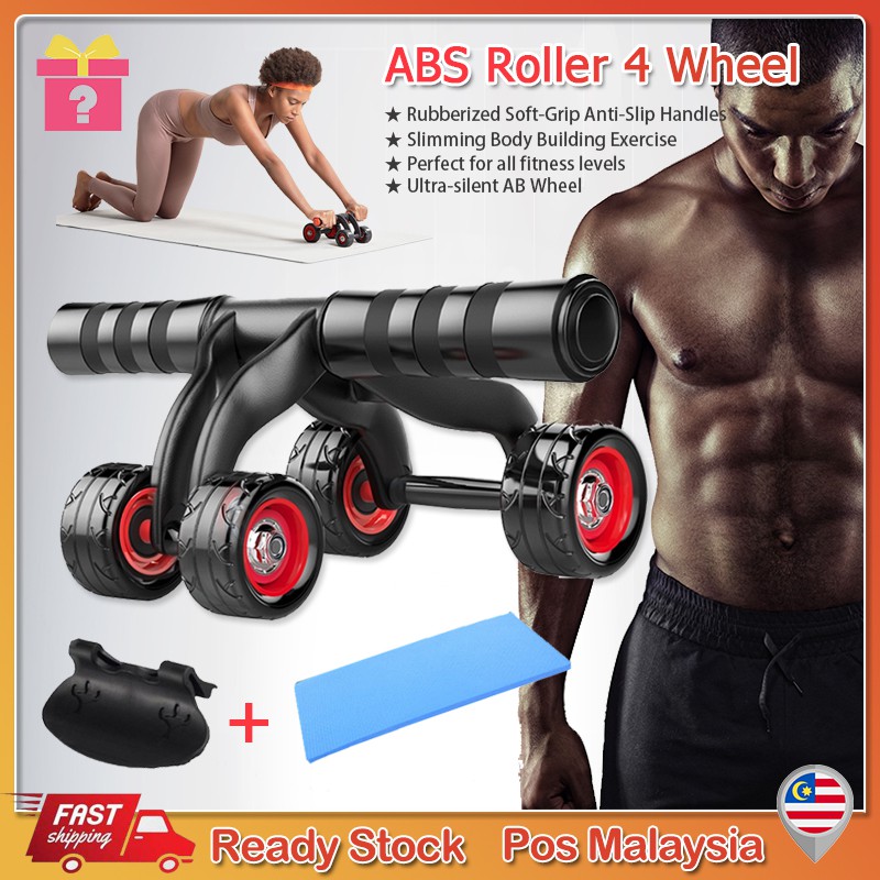 💪【Ready Stock】ABS Roller 4 Wheel Abdominal Exercise Gym Fitness