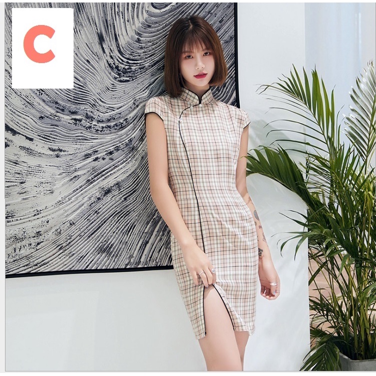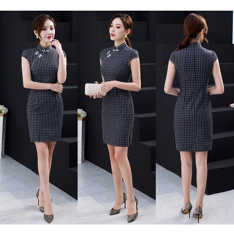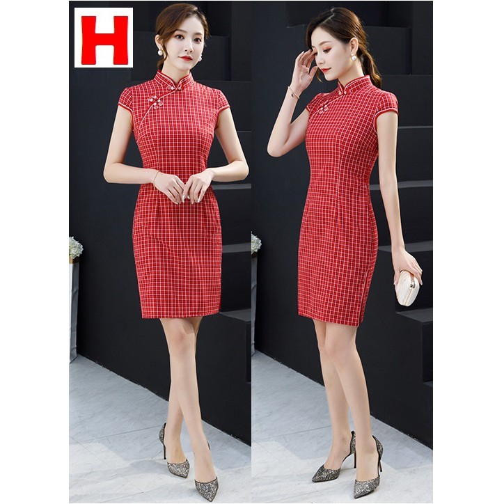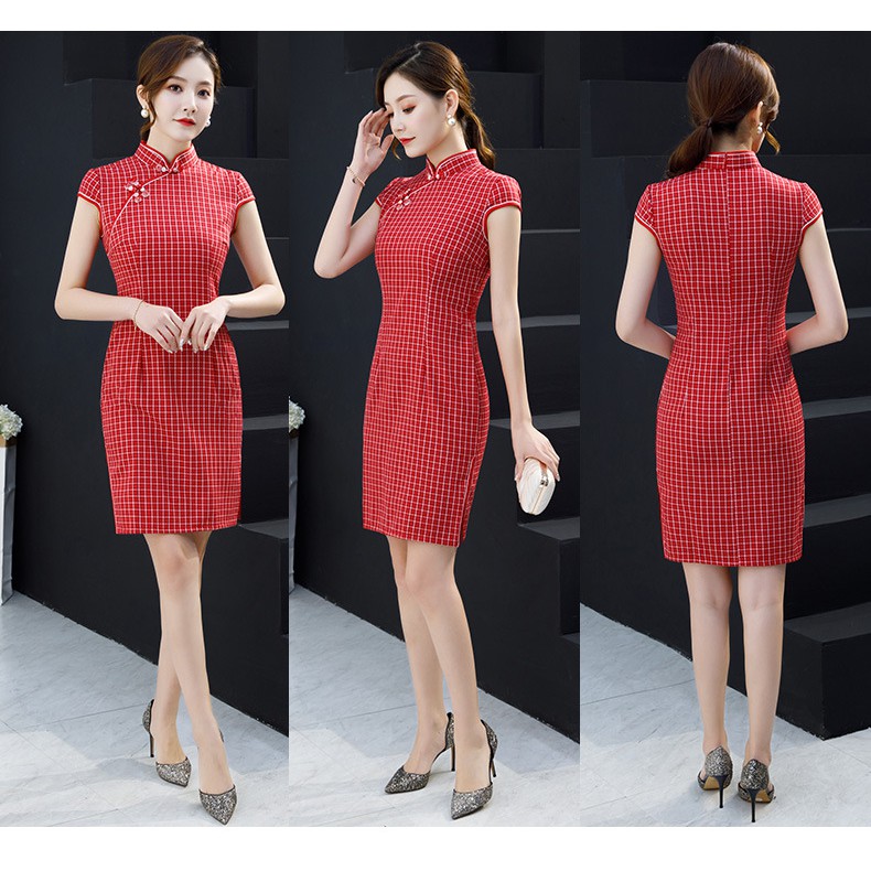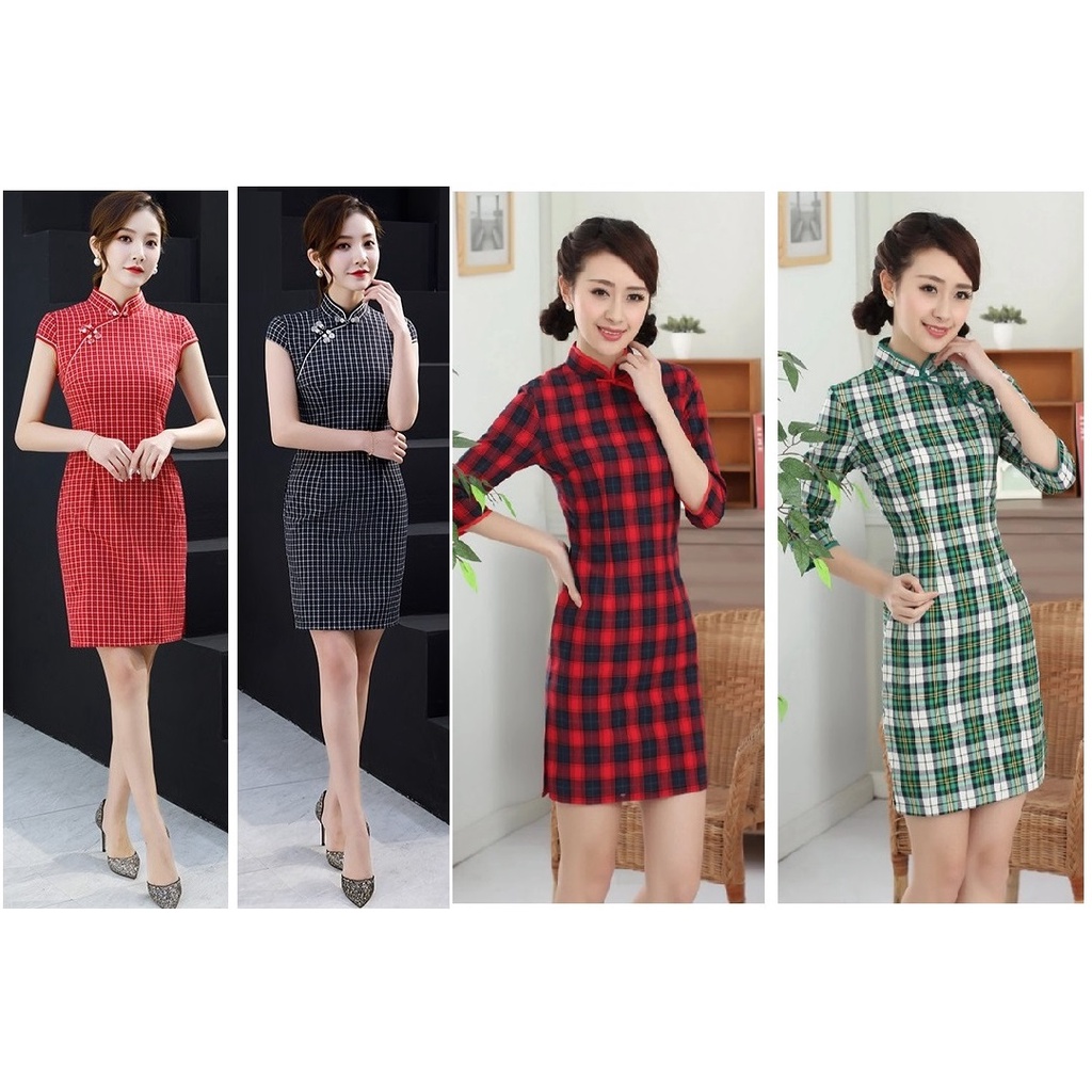 🔥🔥New🔥Women Cheongsam Chinese New Year Dress Traditional Dress CNY Dress 中国传统棉麻格子旗袍