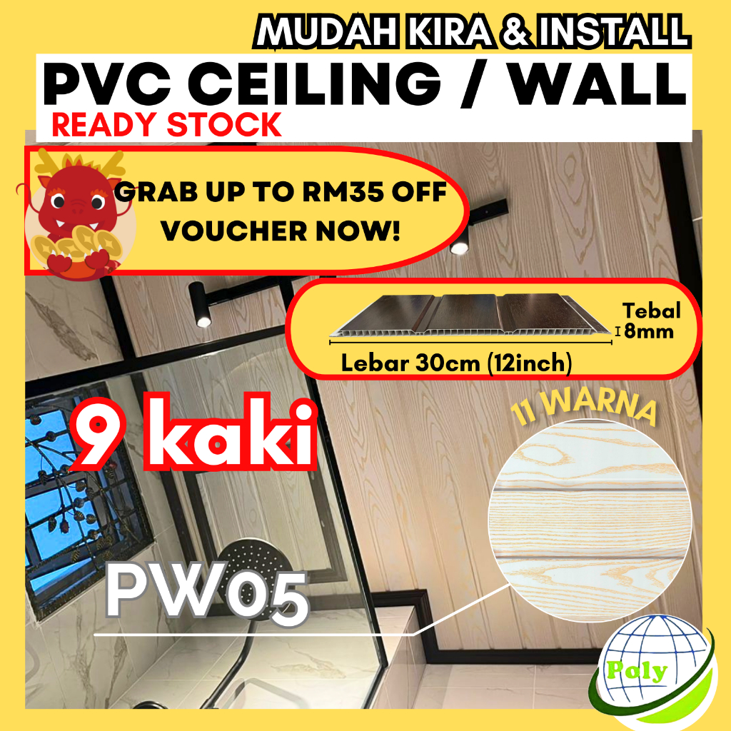 🔥 9 FT PVC Ceiling Wall Panel 🔥 Home Ceiling/Wall Waterproof 30cm x 8mm (Ready Stock)