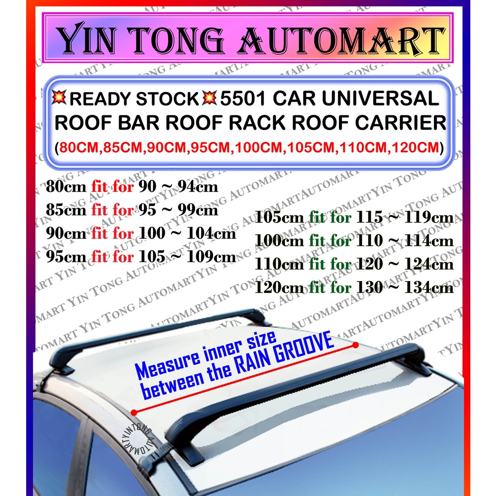 🔥 Ready Stock 🔥 5501 Car Universal Roof Bar Roof Rack Roof Carrier (80CM, 85CM, 90CM, 95CM, 100CM, 105CM, 110CM, 120CM)