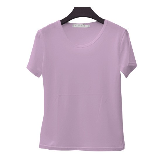 Women's white shirts Milk Silk Fabric Solid Color Round Neck Slim Fit Thin Top Short Sleeve T-Shirt