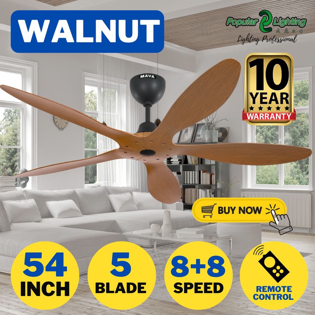 🔥Free Shipping MAVA FREESENZ 54" 8 Speed Auto Speed Ceiling Fan DC Motor With Remote Control Black Walnut/ Kipas Siling