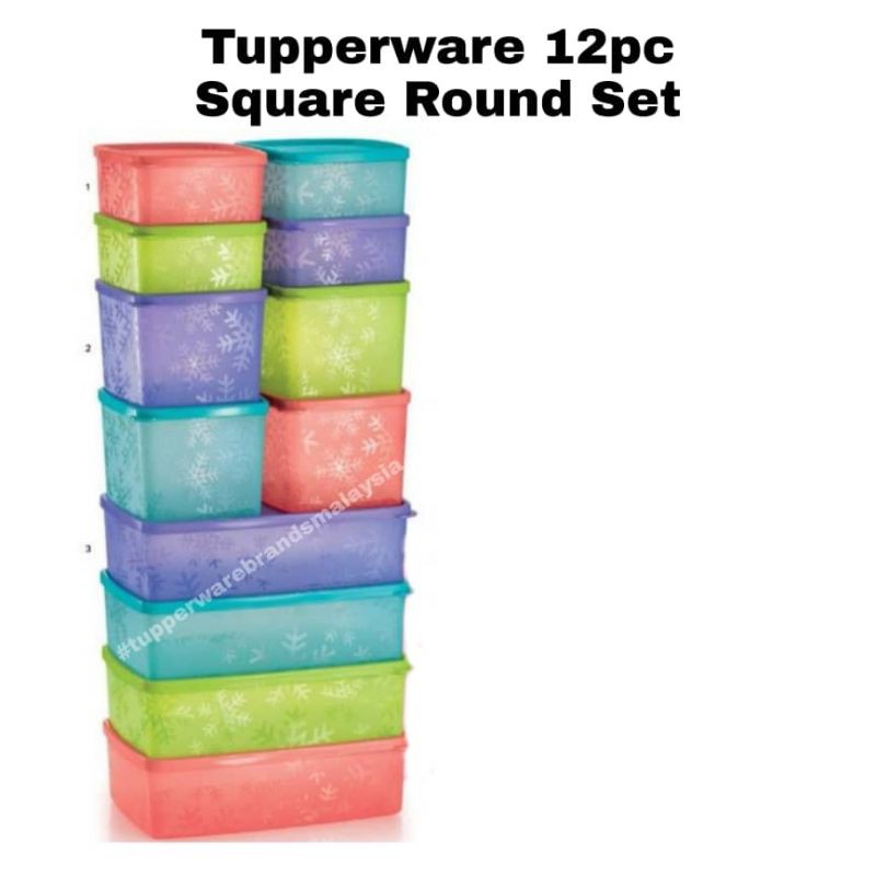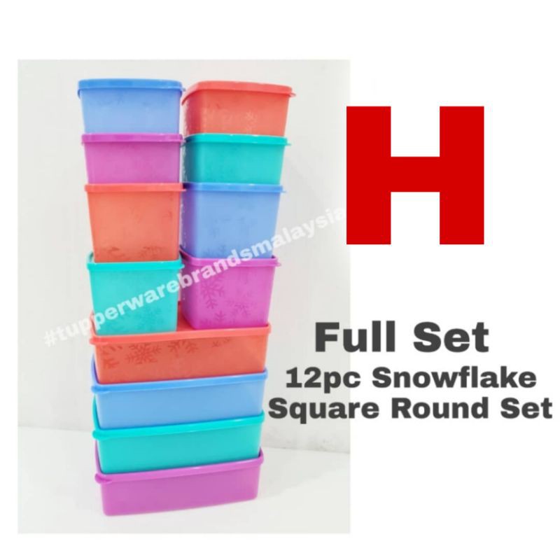 🔥PROMO🔥Tupperware 12pcs Snowflake Square Round Set 400ml, 800ml, 1.3Litre