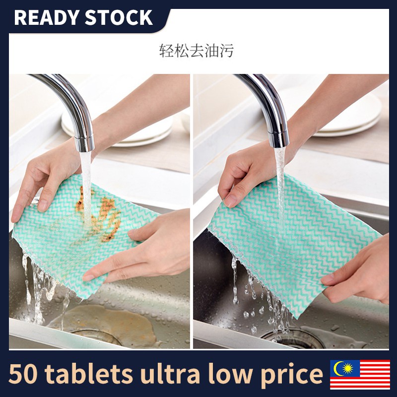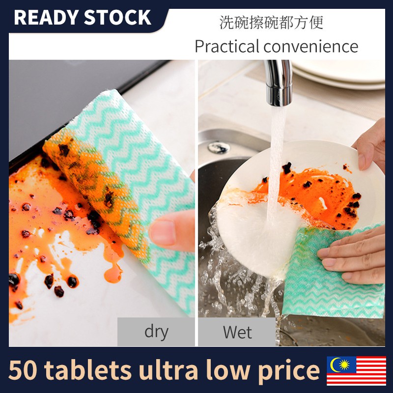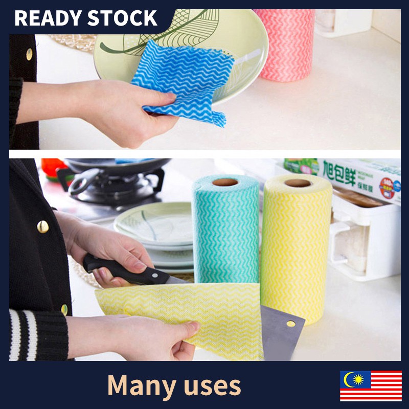 🔥READY STOCK🔥50 pieces Roll Cleaning Cloths Lazy Rags Dry Washable Disposable Dish Paper Towel Cloth for Kitchen懒人抹布加厚免洗