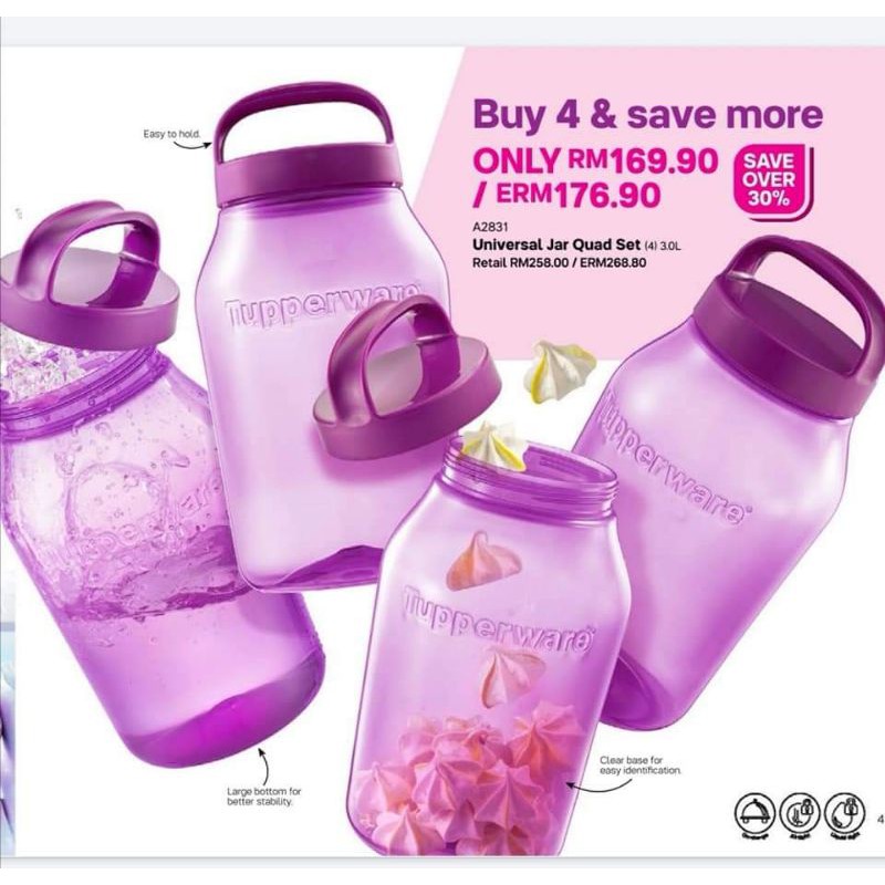 🔥Ready Stock🔥Tupperware Universal Jar Quad 3.0L And 4.5L (4pcs)