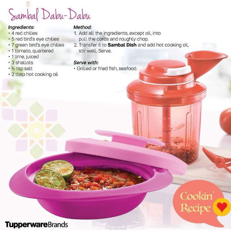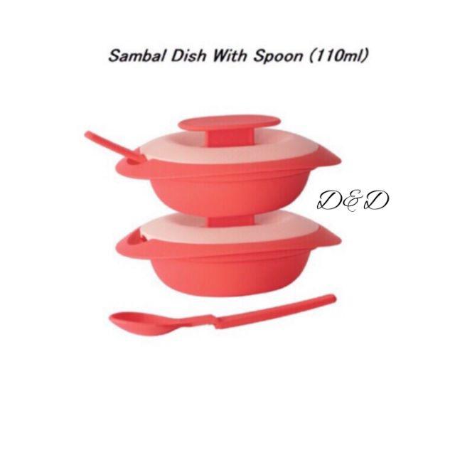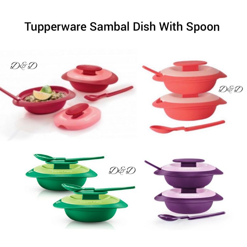 Tupperware Sambal Dish With Spoon (1) - 110ml [Coral Bloom/Emerald Green/Red/Royale Purple]