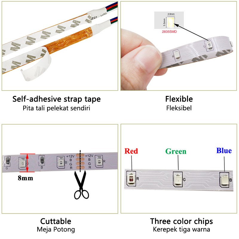 🔥ready stock🔥Waterproof LED Strip Light RGB LED Light Strip 2835 LED Tape Lights Color Changing Strip Lights lampu led