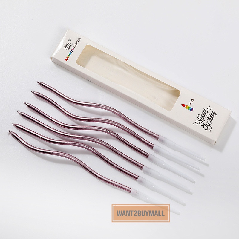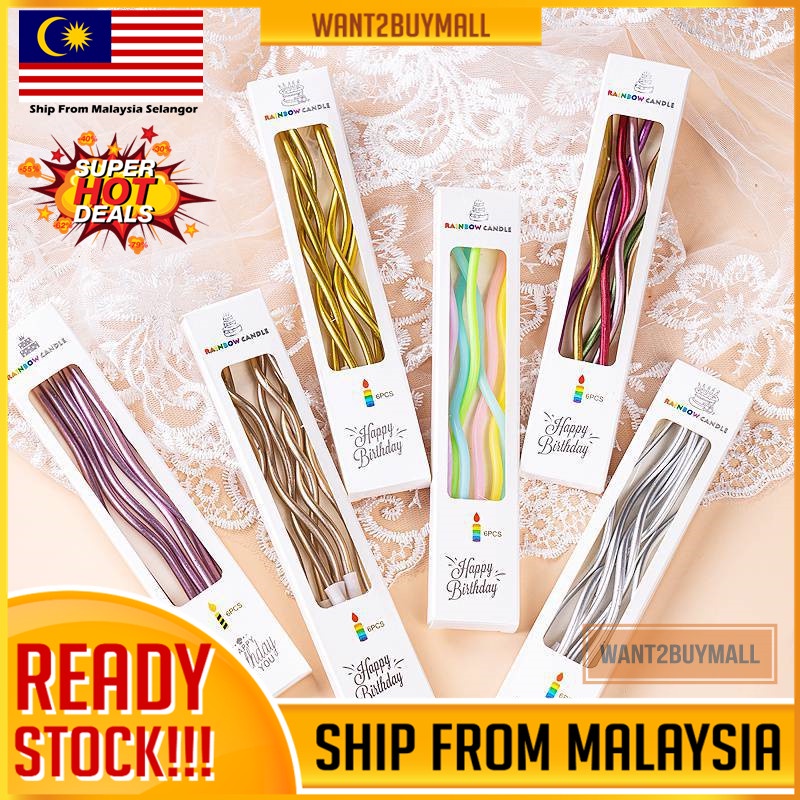 🕯️6pcs/Set🕯️17cm Curve Spiral Shape Candle Metallic Rainbow Candle Birthday Candle Cake Topper Lilin Api Hari Jadi曲线生日蜡