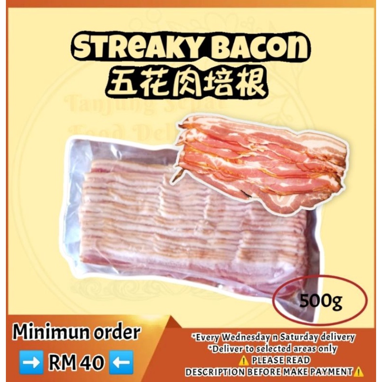 🥓Streaky Bacon🥓烟熏培根~pork(500g)