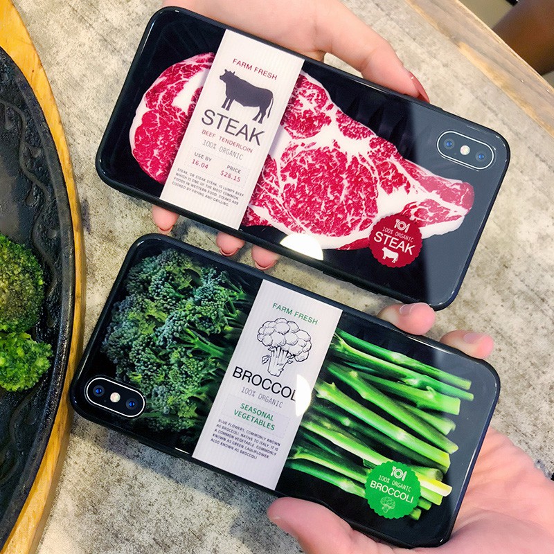 Food temptation steak broccoli realism realistic Interesting ideas glass for iPhone16PLUS 15 PRO 14 PLUS 12 MINI 13 PRO 11 XS phone case