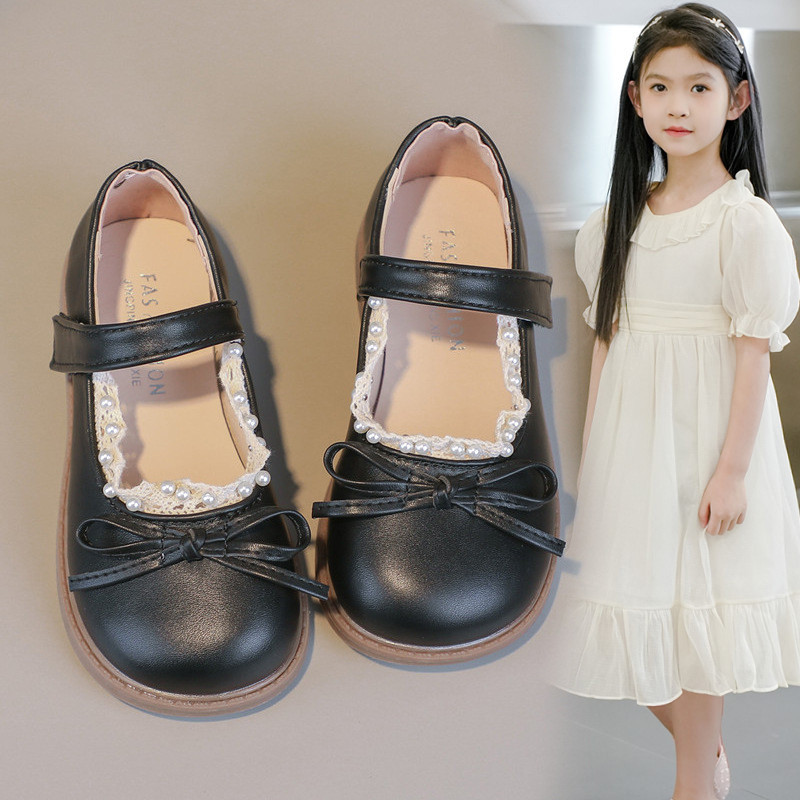 (((26-36) Girls' Small Leather Shoes 2025 Spring New Style Baby Bow Princess Shoes Korean Version Medium Large Children Soft Sole Children's Shoes