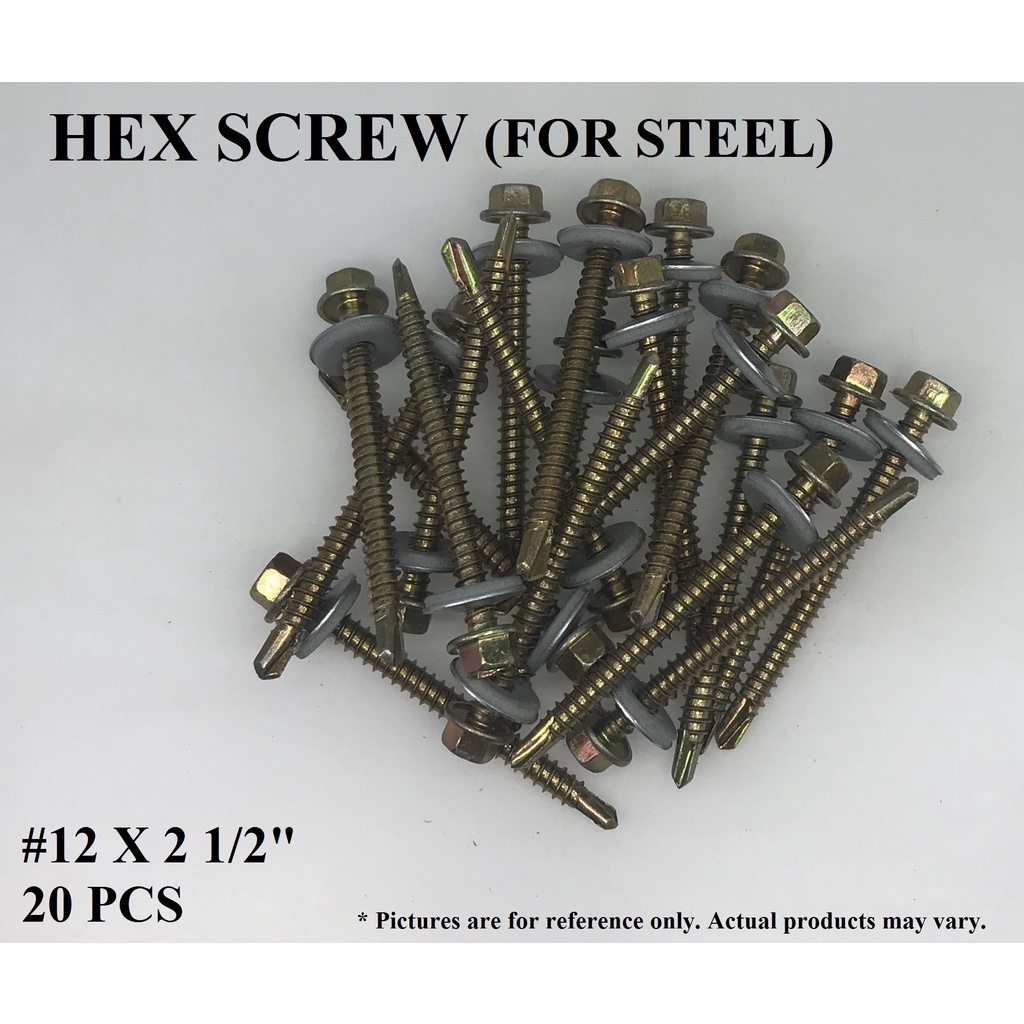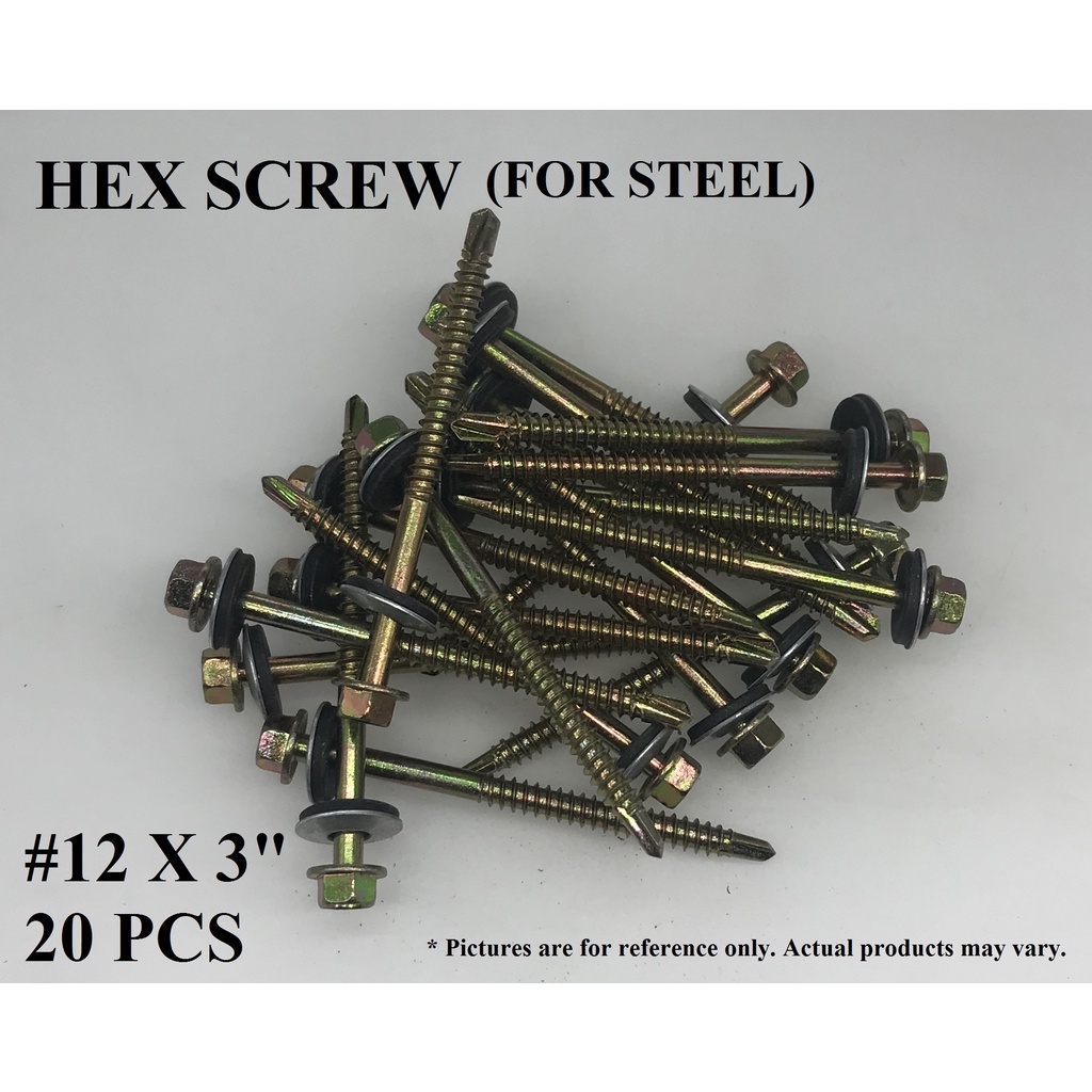 (*READY STOCK*) [20 PCS] [#10 X 3/4", 1"] [#12 X 1 1/2", 2", 2 1/2", 3"] (FOR STEEL) HEX SCREW
