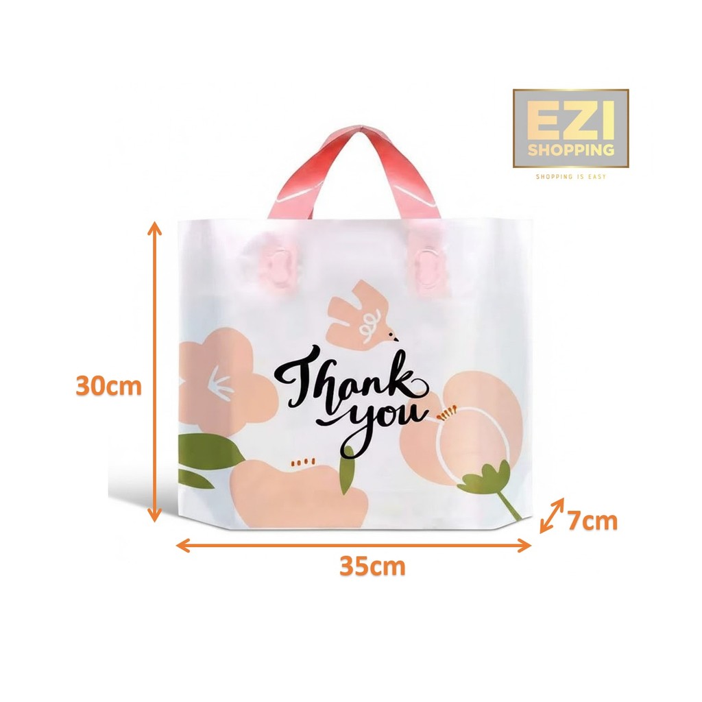 (+-50pcs)TQ Goodies Bag (S size-30x25cm & 35x30cm) Shopping Plastic Bag Handle Clothes Packaging Thank You Bag