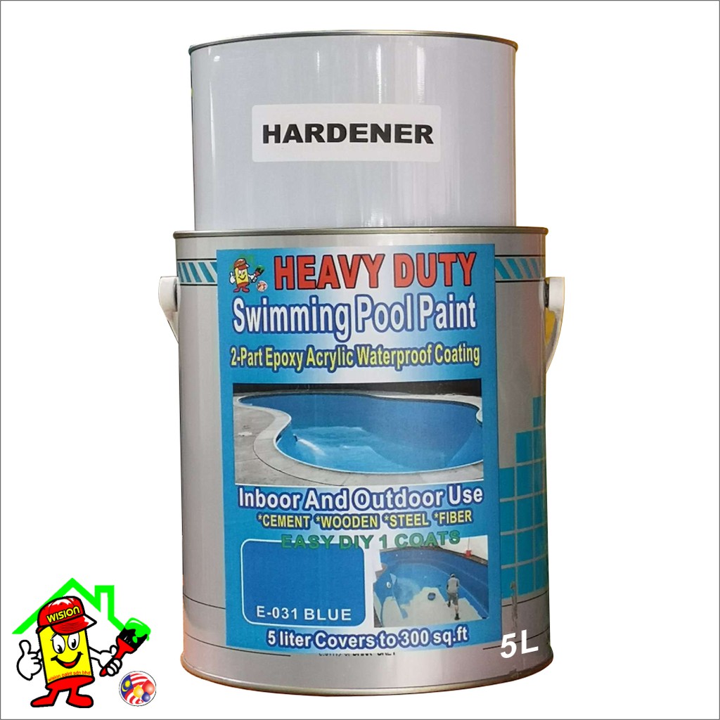 ( 5L ) SWIMMING POOL PAINT 2 PART EPOXY ACRYLIC WATERPROOF COATING INDOOR AND OUTDOOR USE HEAVY DUTY