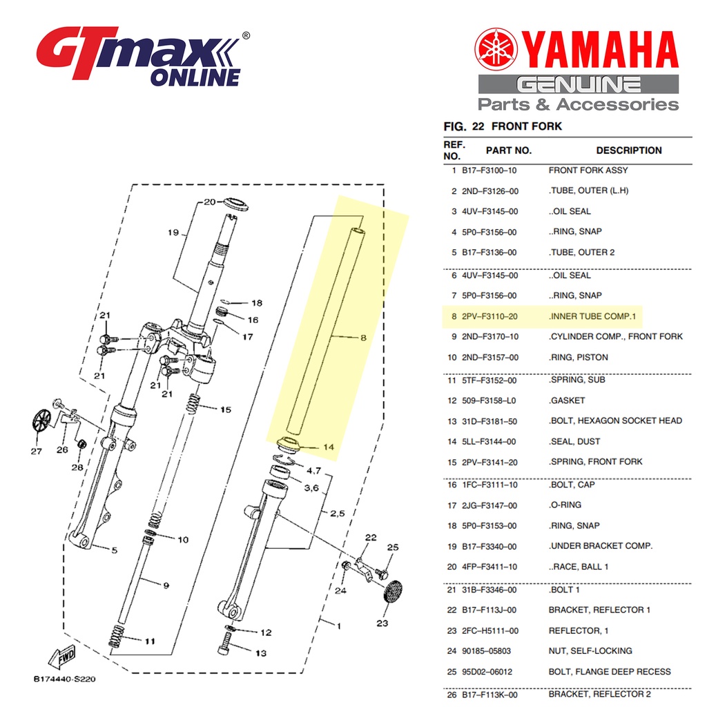 ( BERANI JAMIN 100% HLY!) YAMAHA Y15 ZR Y15ZR V2 INNER TUBE COMP FORK INNER TUBE - 2PV-F3110-20