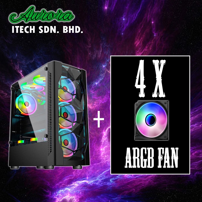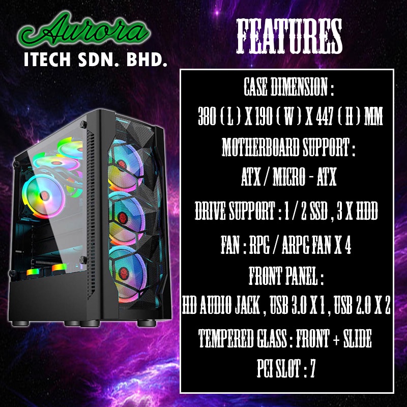 ( GAMING DIY CASING ) ATX GAMING CASING PC DIAMOND 1 WITH RGB / ARGB FAN , MOTHERBOARD ATX / MICRO - ATX SUPPORT