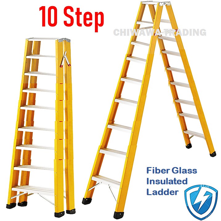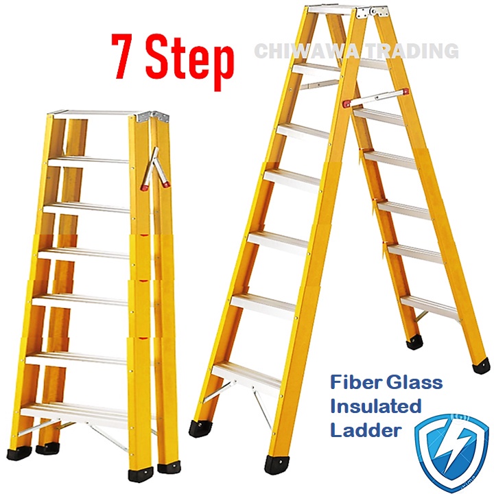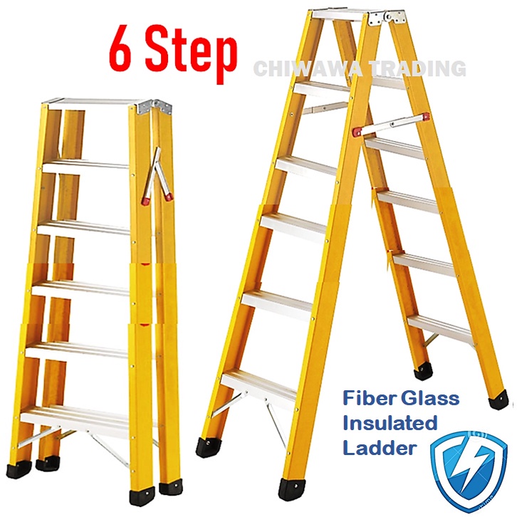( LD12 ) Heavy Duty Foldable Fiberglass Double Sided Electrical Insulated Ladder / Tangga