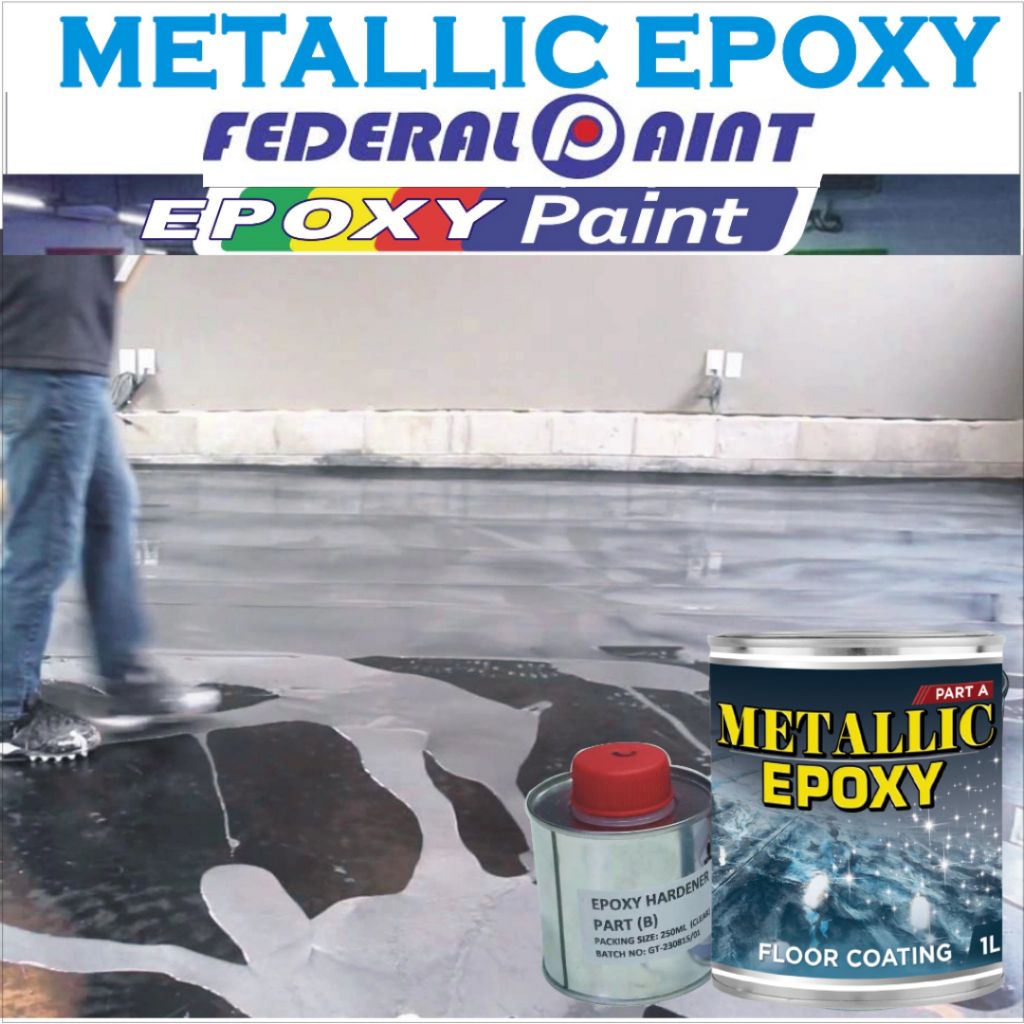 ( Metallic Epoxy Paint ) 1L METALLIC EPOXY FLOOR PAINT PROTECTIVE & COATING Tiles & Floor Paint / WP FEDERAL PAINT