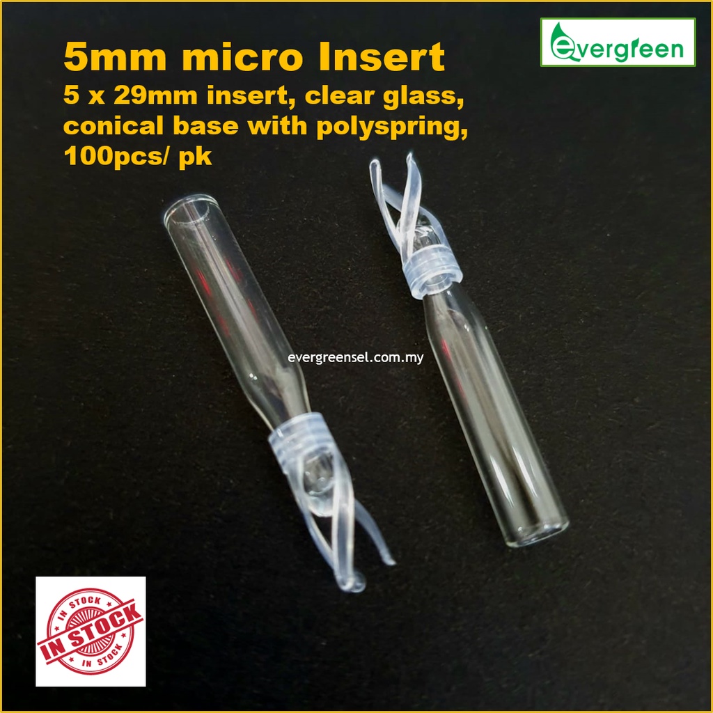 ( READY STOCK ) Micro Insert Clear Glass Conical Base with Polyspring, 5x29mm, 6x29mm, 100pcs/pk.