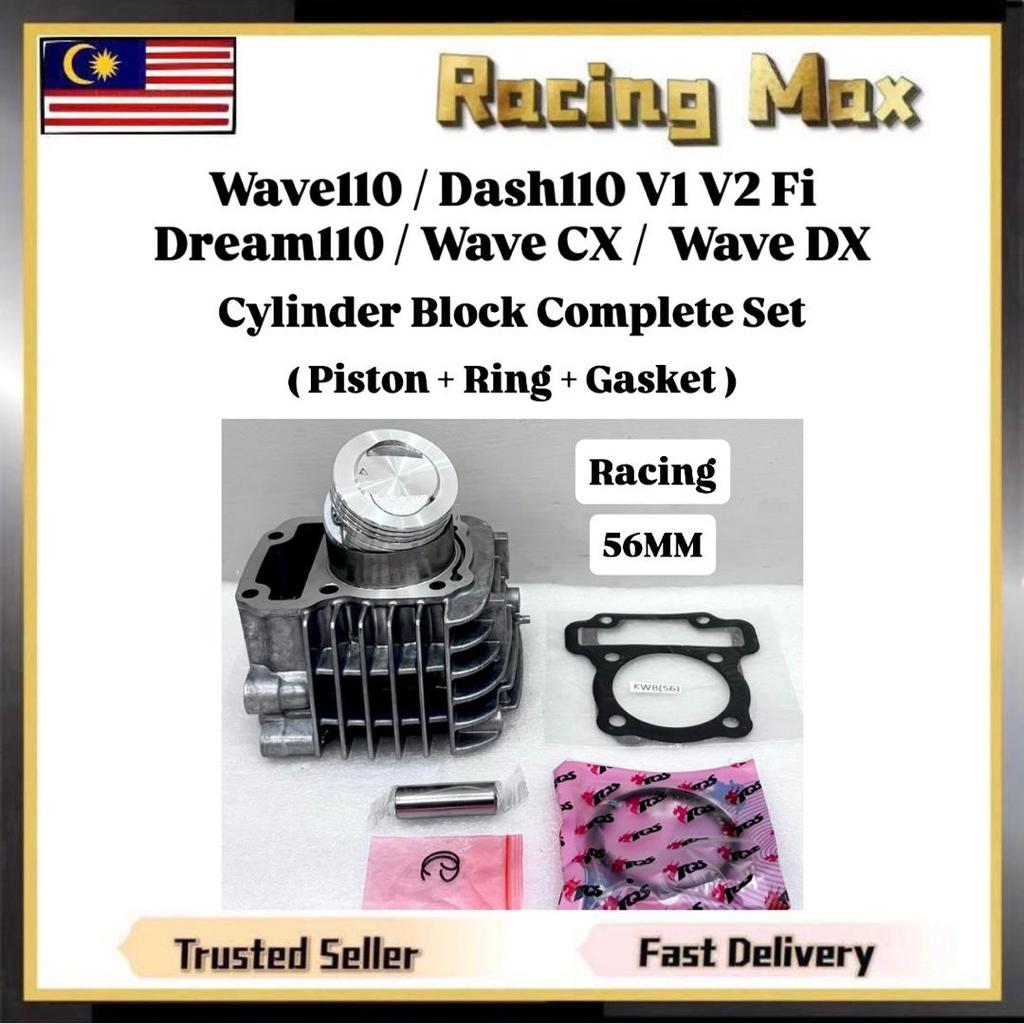 ( Racing 56MM ) Wave110 Wave 110 Dash110 Dash 110 V1 V2 Fi Wave Alpha CX DX Cylinder Block 56 MM Blok Kit Complete Set