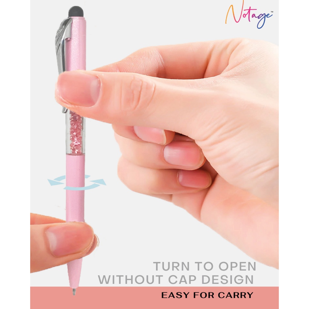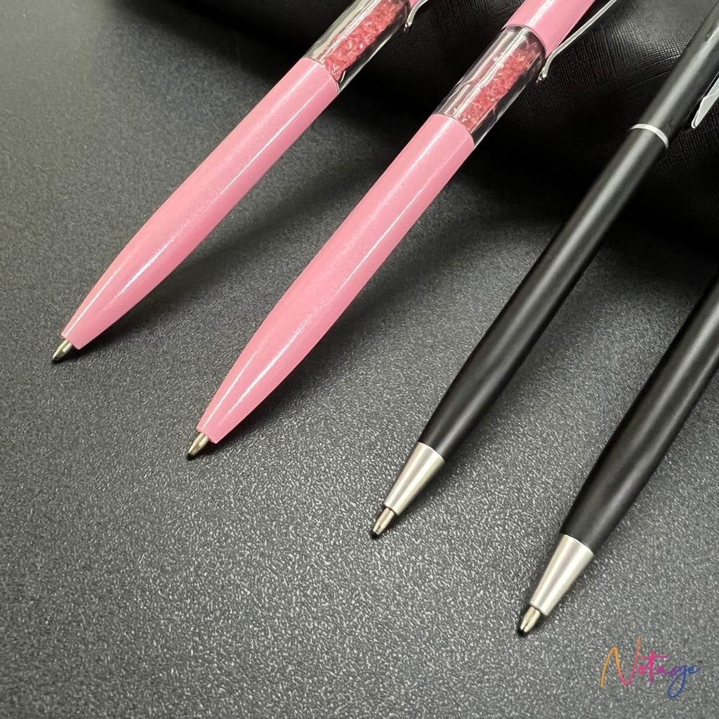( Ready Stock ) 3PCS Black Ink Pen Black Metal Pen Pink Diamond