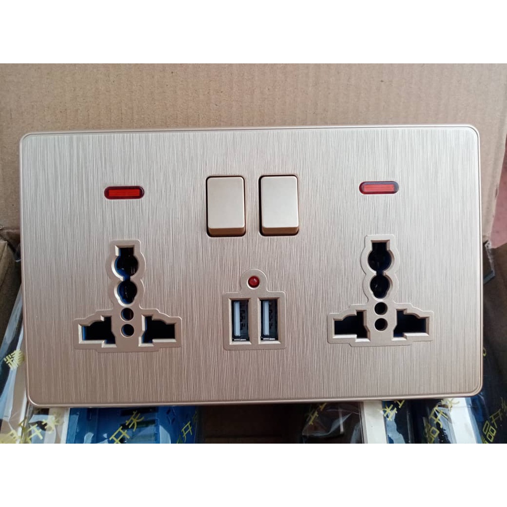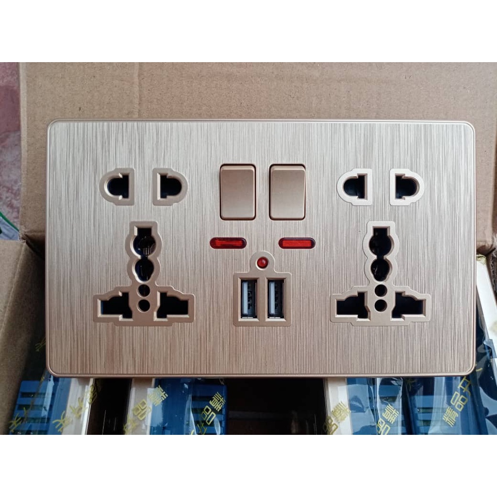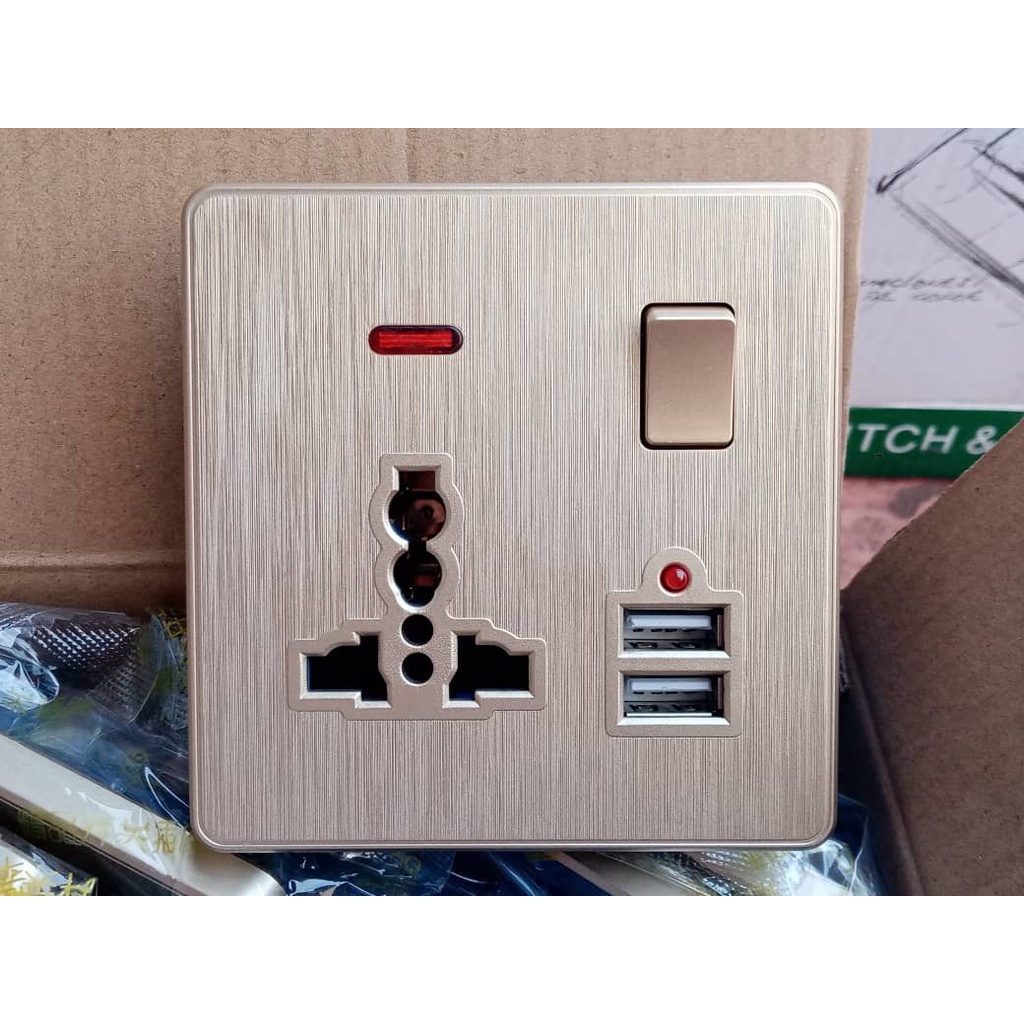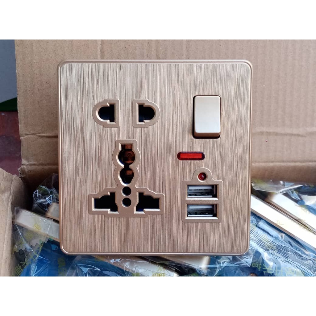 ( WOODEN ) deluxe color switch socket plug 13a amps power socket 3pin usb port suis neon palam dalaman elektrik pluk