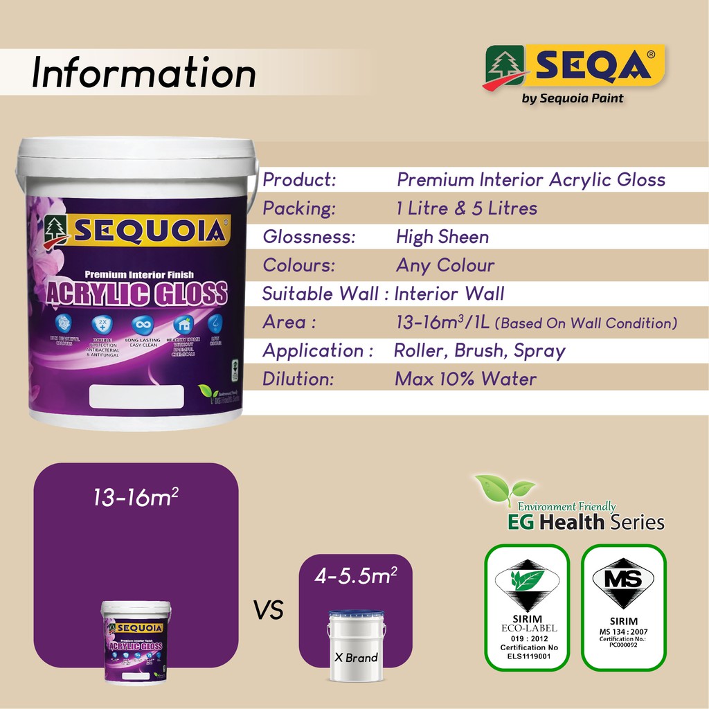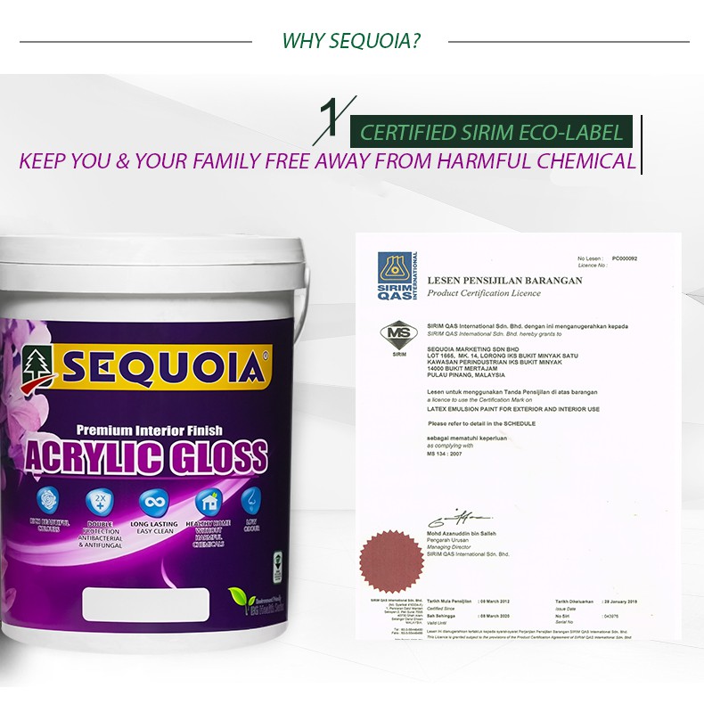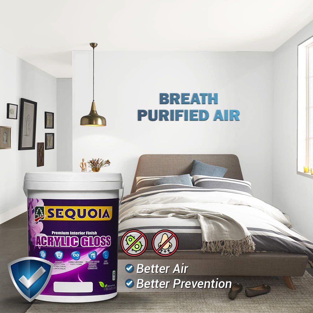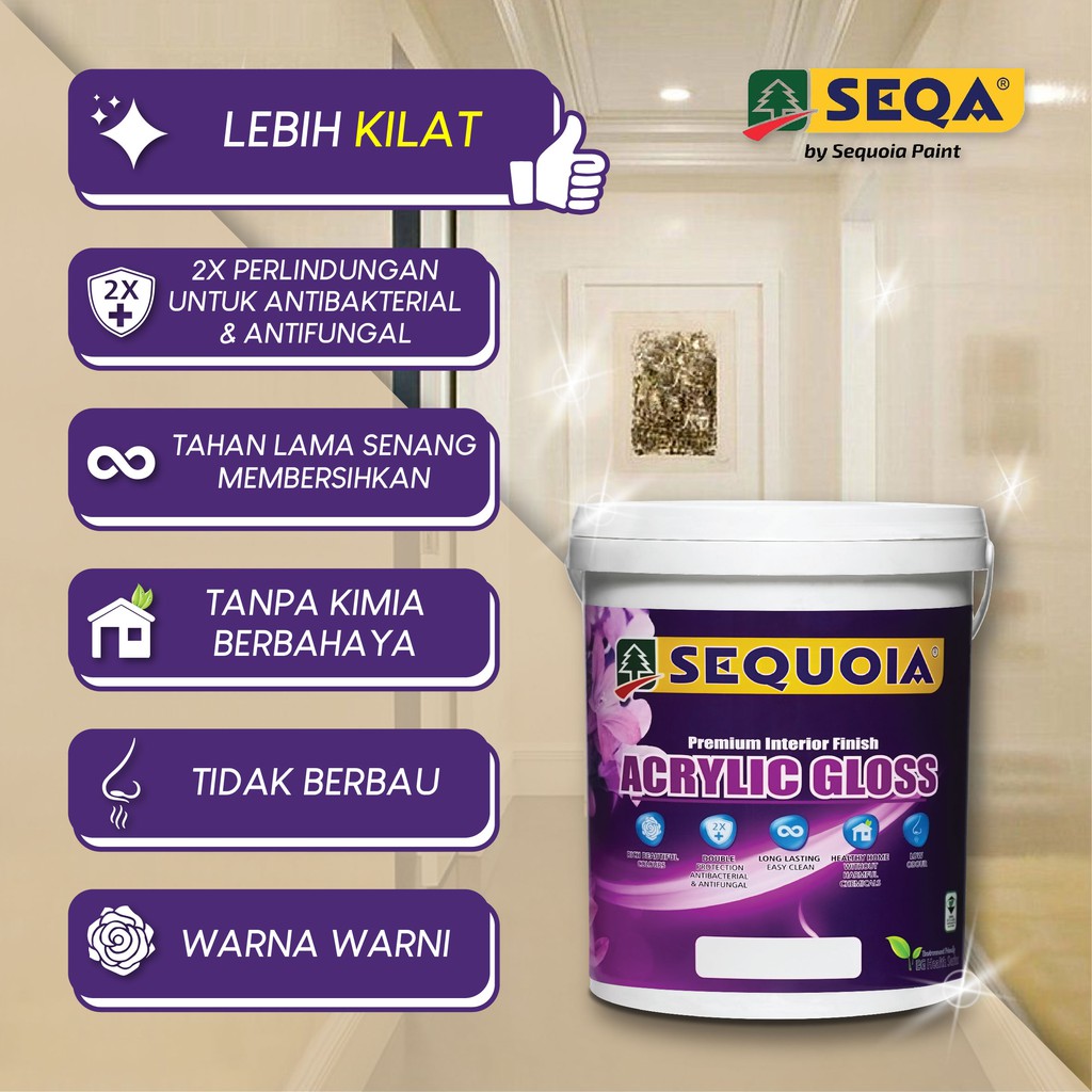 ( Yellow / Kuning ) 5L 💥Sequoia Acrylic Interior Gloss 💢 Cat Kilat Dinding