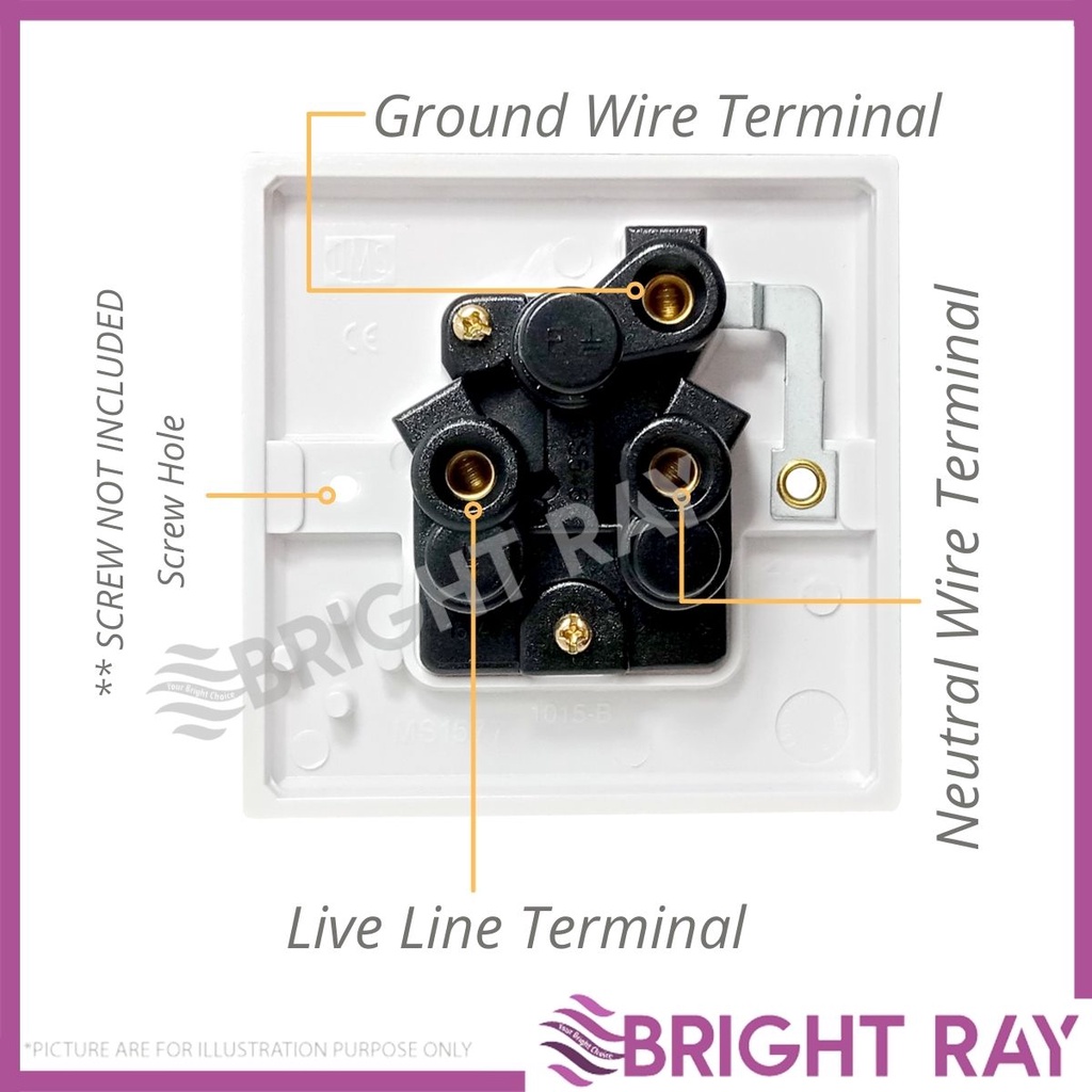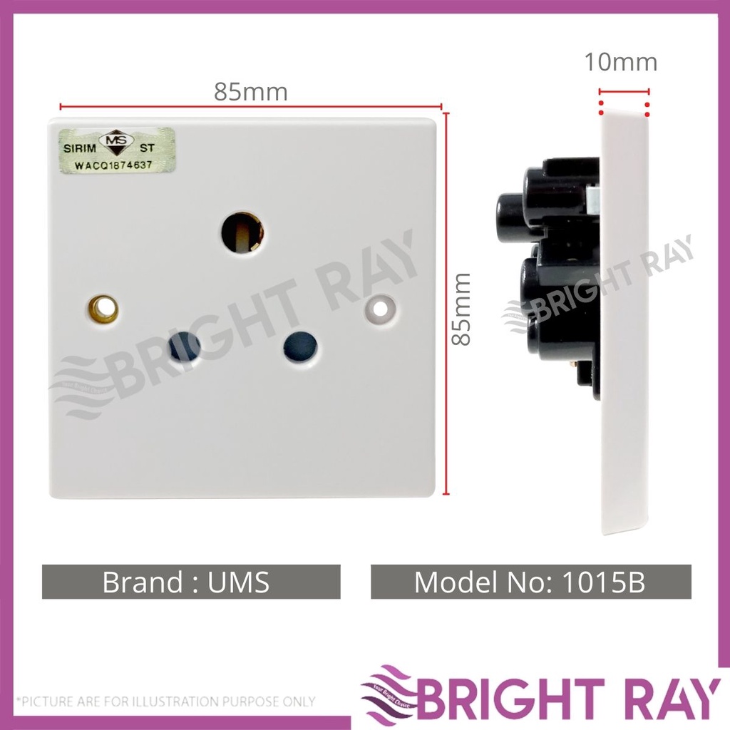 (1 PC) UMS 15A Switch Socket 250V AC 1 Gang Switched Socket Outlet Heavy Duty Socket 1215A