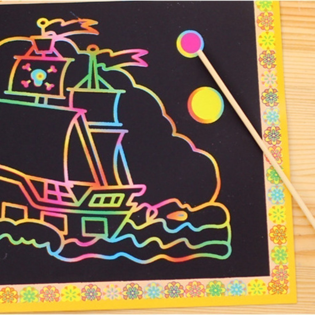 (1 PCS) Kids Magic Scratch Art Card Scraping Coloring Paper Rainbow Art Craft Dual Sided DIY Colorful Children Doorgift