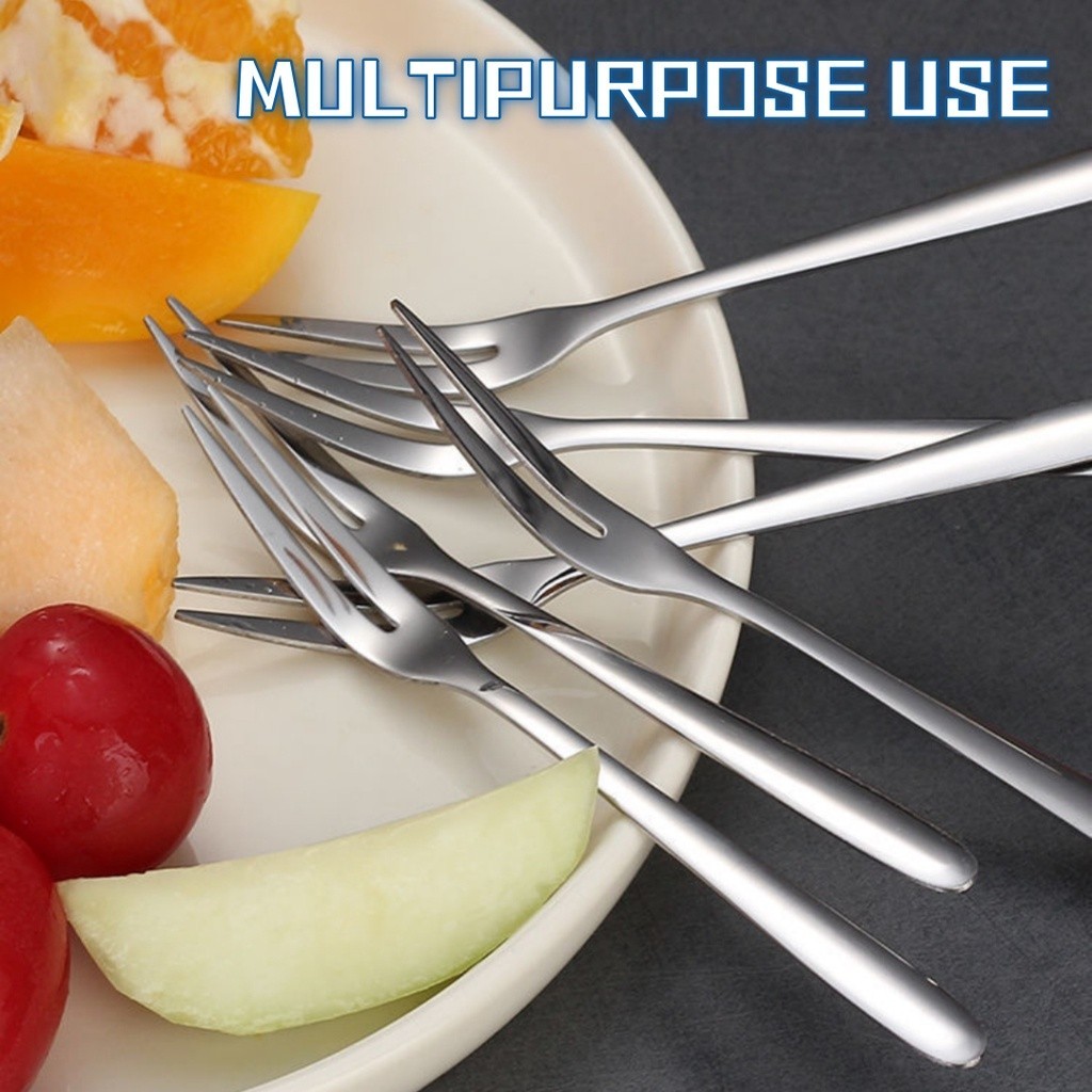 (1 PCS) Stainless Steel Fruit Fork Thick Tableware Two Tooth Small Fork Snack Dessert Cutlery Mini Fork Ice Cream Fork
