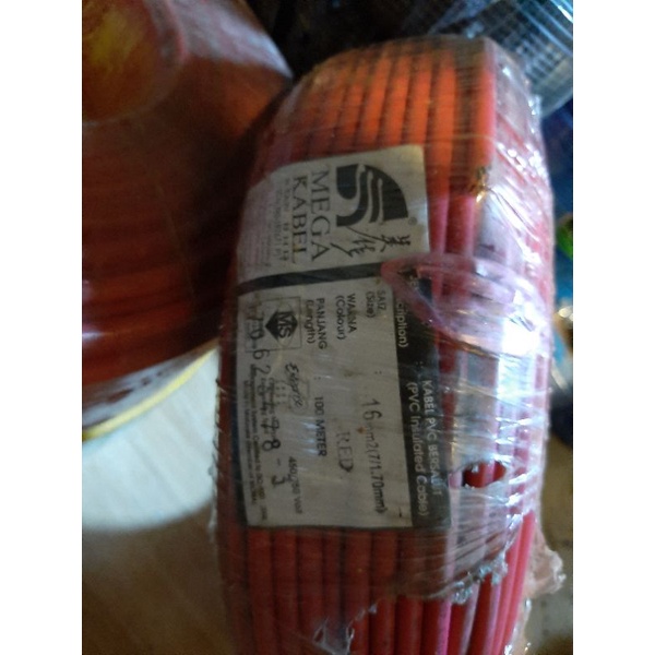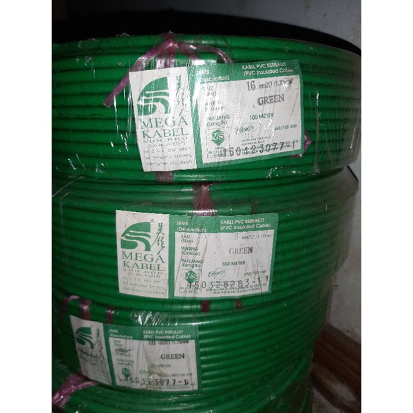 (1 Roll) 16 mm Mega Kabel Multi Southern cable SIRIM Cable 16mm Single layer (7/1.70mm) - Green, Yellow, Red, Black
