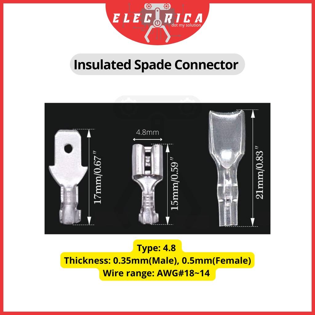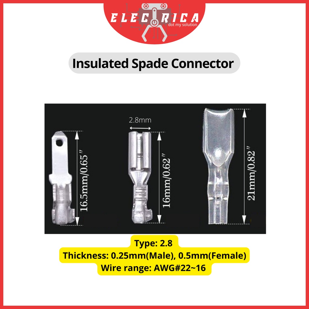 (1 Set) 2.8/4.8/6.3MM Insulated Spade Connector Female + Male + Insulator Sleeve