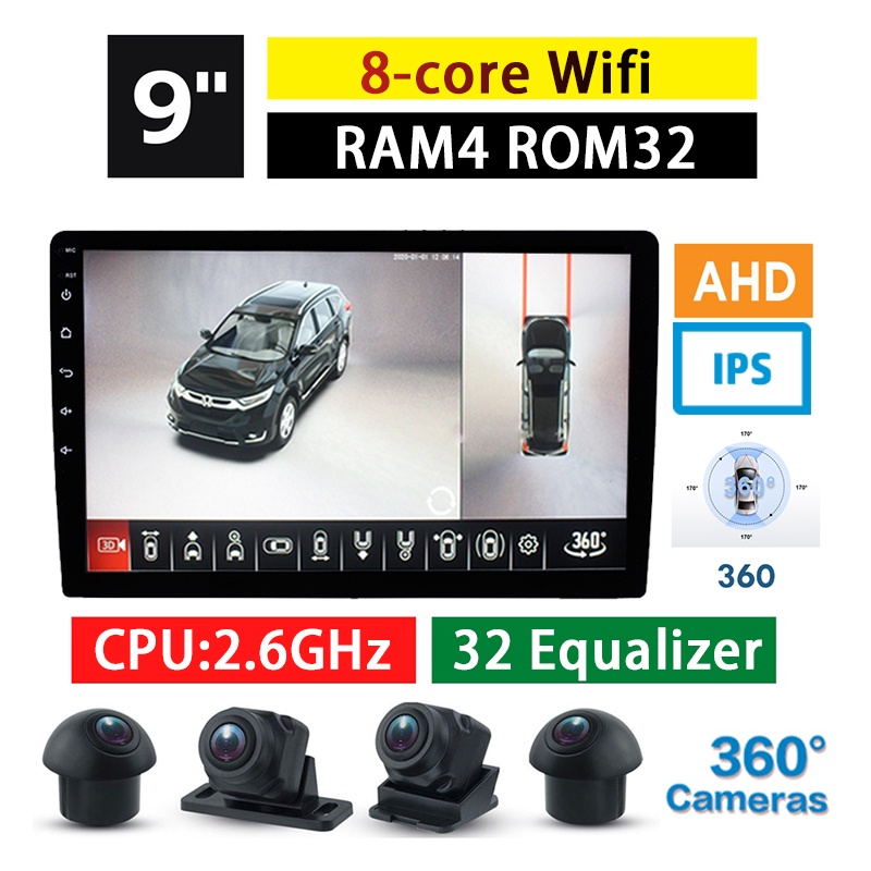 (1-year warranty) 4G+32G Android12 7" 9" 10" Wifi GPS Android Car Player 2din Radio Kereta 360 Camera Car System