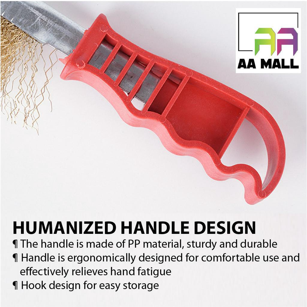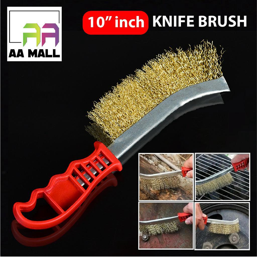 (10" inch) Red Handle Knife Wire Brush Anti Rust Metal Grip Sanding Brush Berus Tembaga Besi Pemegang Plastik Copper
