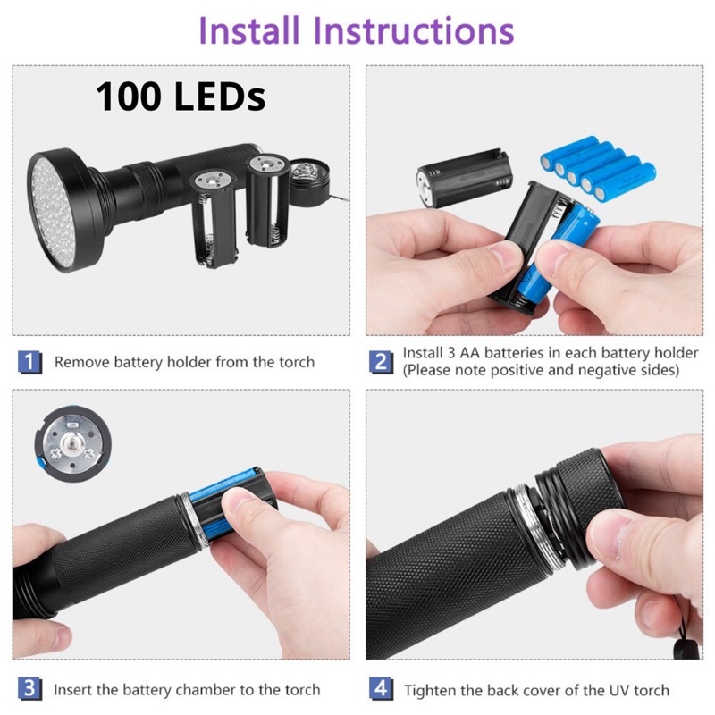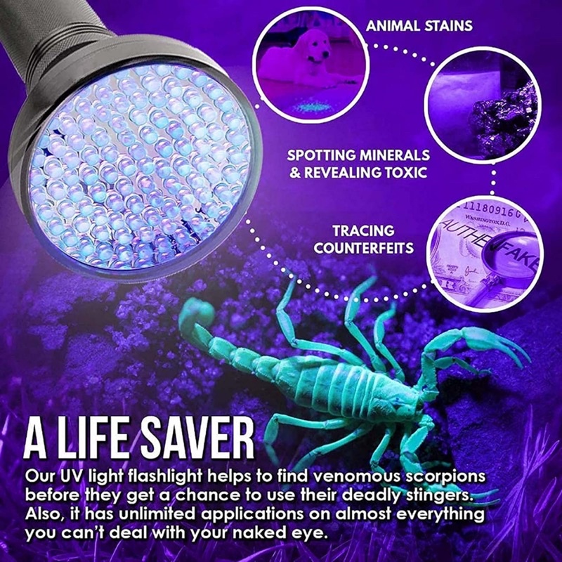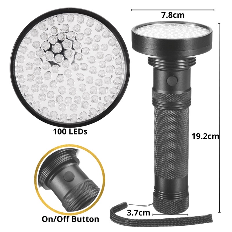 (100 LEDs) UV Flashlight / Money Detector / Pet Urine Detector / Stains Detector / Bed Bugs Detector