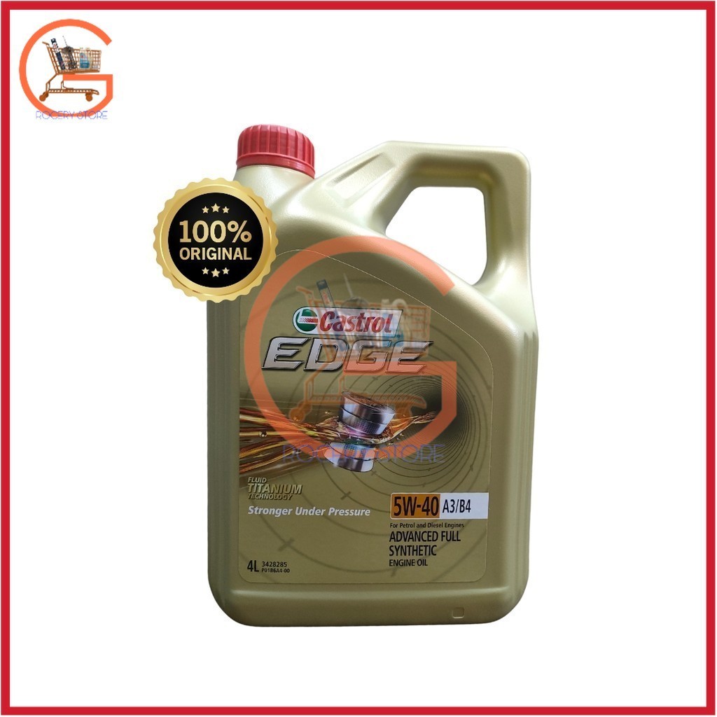 (100% ORIGINAL) CASTROL EDGE 5W40 FULLY SYNTHETIC ENGINE OIL 4 LITER ORIGINAL 5W-40 (LONGLIFE/SMOOTH/QUIET/PERFORMANCE)
