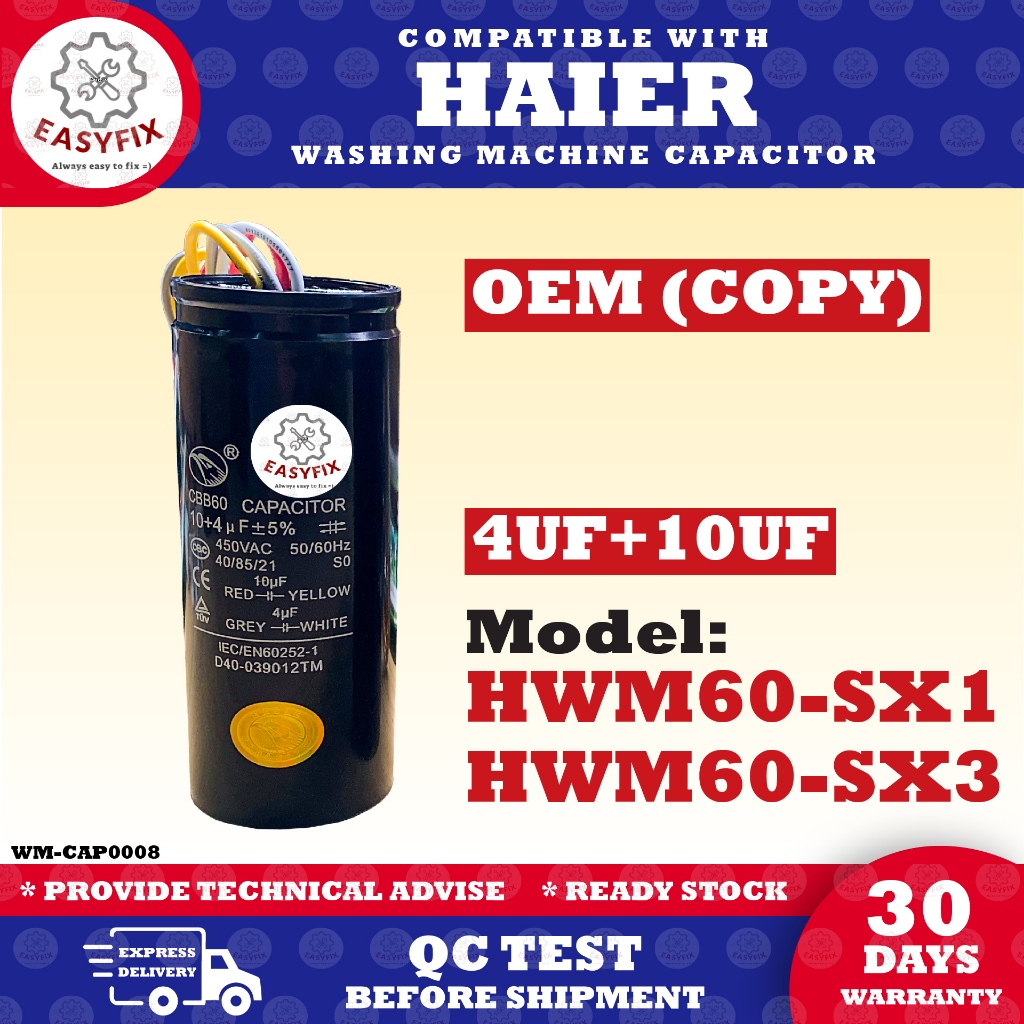 HWM60-SX1 / HWM60-SX3 COMPATIBLE WITH HAIER 4UF 10UF 2IN1 SPIN WASH CAPACITOR WASHING MACHINE KAPASITOR HAIER