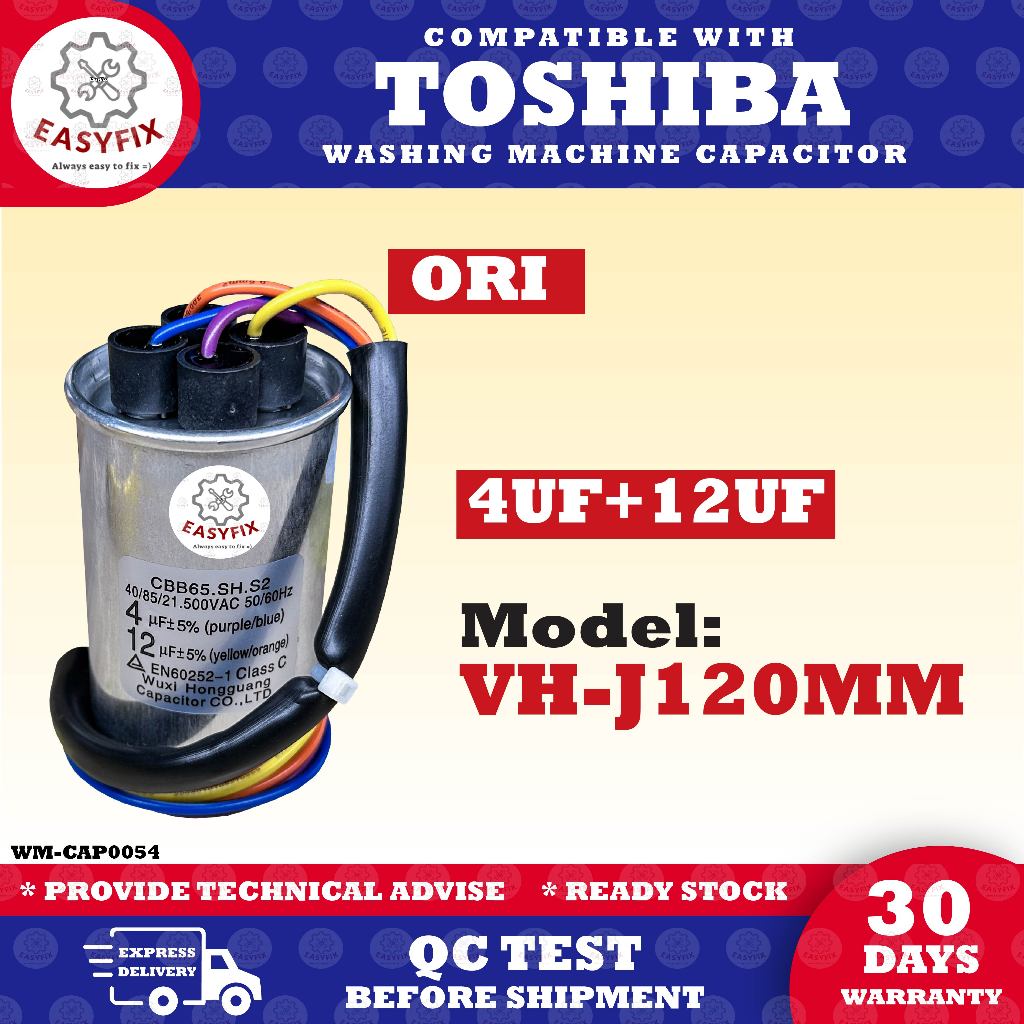 VH-J120MM COMPATIBLE WITH TOSHIBA 4UF 12UF 2IN1 SPIN CAPACITOR WASH CAPACITOR Washing Machine KAPASITOR TOSHIBA