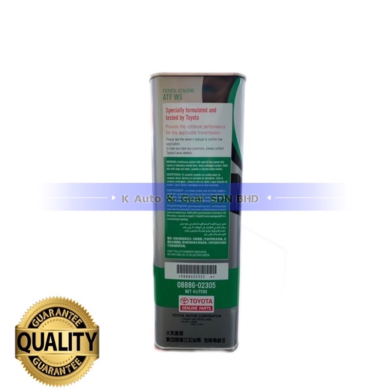 (100% Original) Toyota ATF WS Automatic Transmission Oil Fluid (4L)