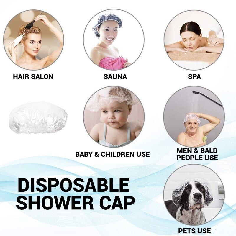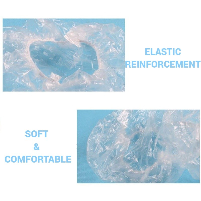 (100 PCS +-) Disposable Waterproof Shower Cap Kitchen Sauna Plastic Hair Bath Cover Transparent Water Resistance Elastic