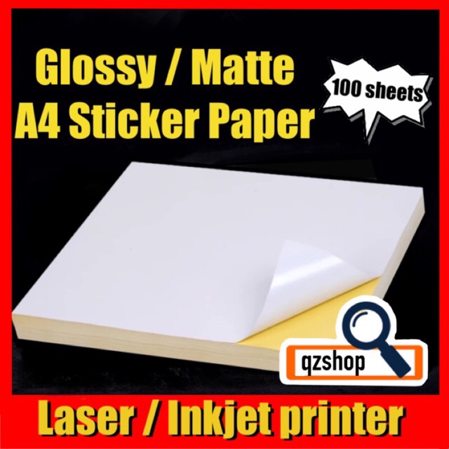 (100 pcs/pack) Glossy / Matte A4 Sticker Paper - 75gsm READY STOCK