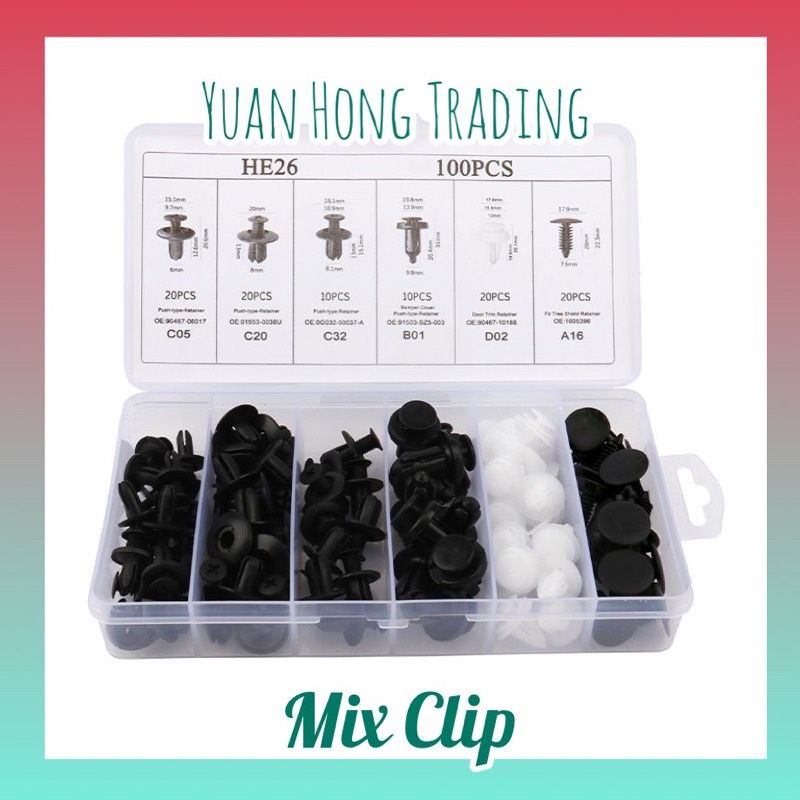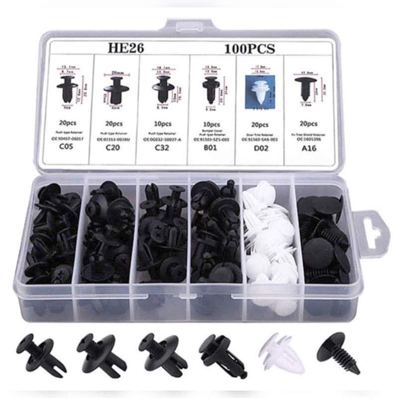 (100pc) Car Clip Car Fastener Car Bumper Clips Rivet Door Panel Retainer Trim Kit Car Push Pin Rivet Klip Kereta murah