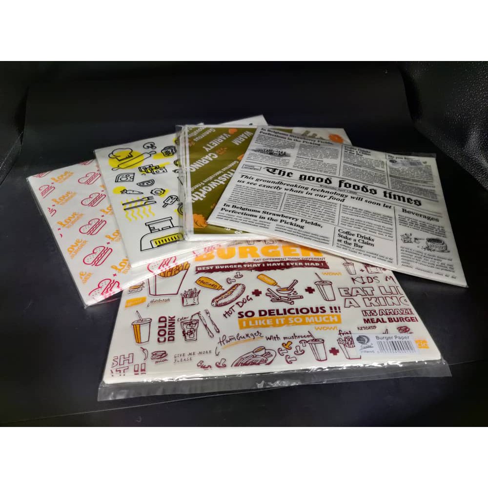 (100pcs) Burger Paper | Burger Wrapping Paper | Food Grade Wax Paper | Burger Wrapper | Sandwich Wrapper | Kertas Burger