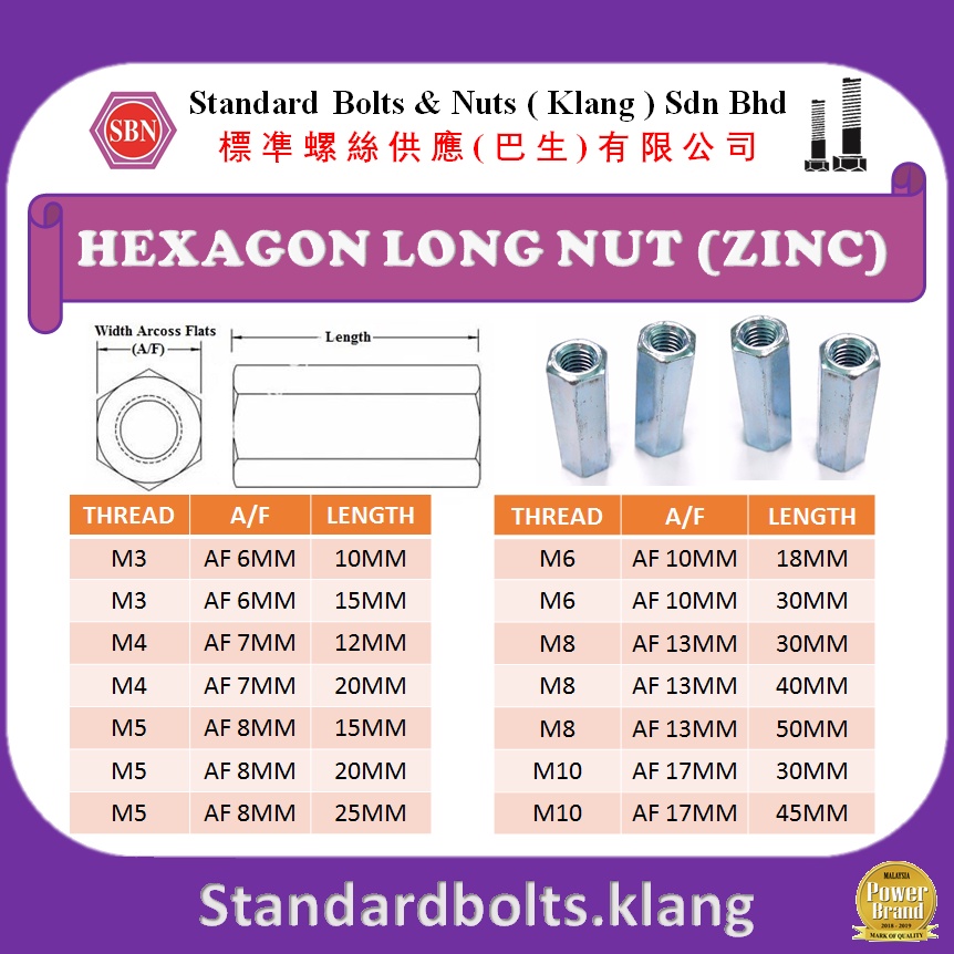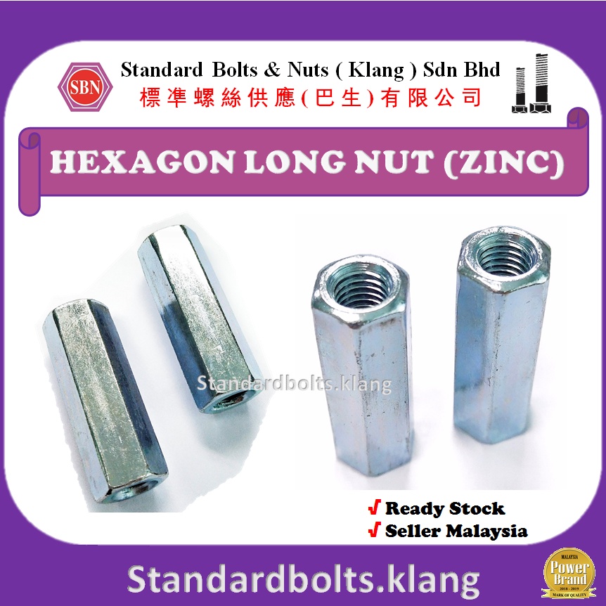 (10PCS) HEXAGON LONG NUT/ Hexagon Coupling Nut (ZINC) SIZE: M3, M4, M5
