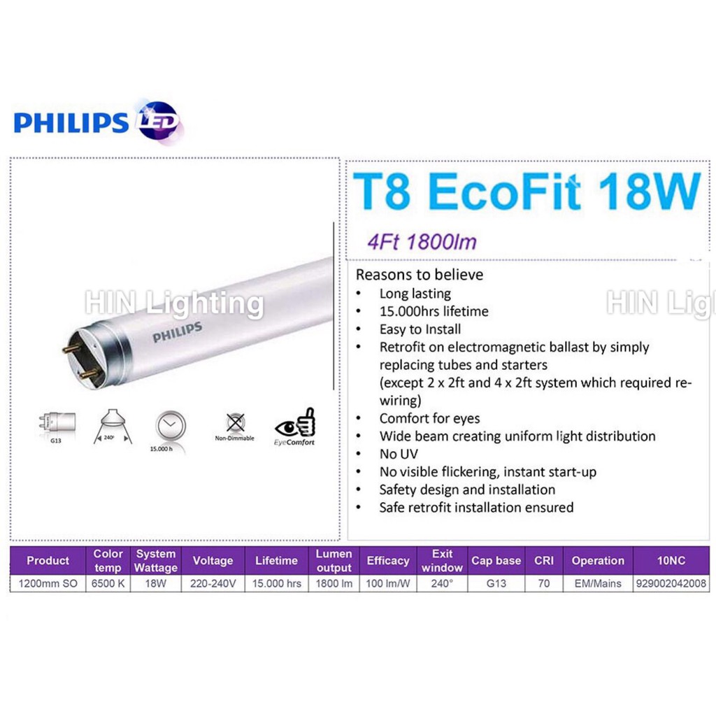 (10PCS SET /BUNDLES )PHILIPS T8 Ecofit LED tube 4FT 18W with casing / 4 KAKI LAMPU PANJANG LED
