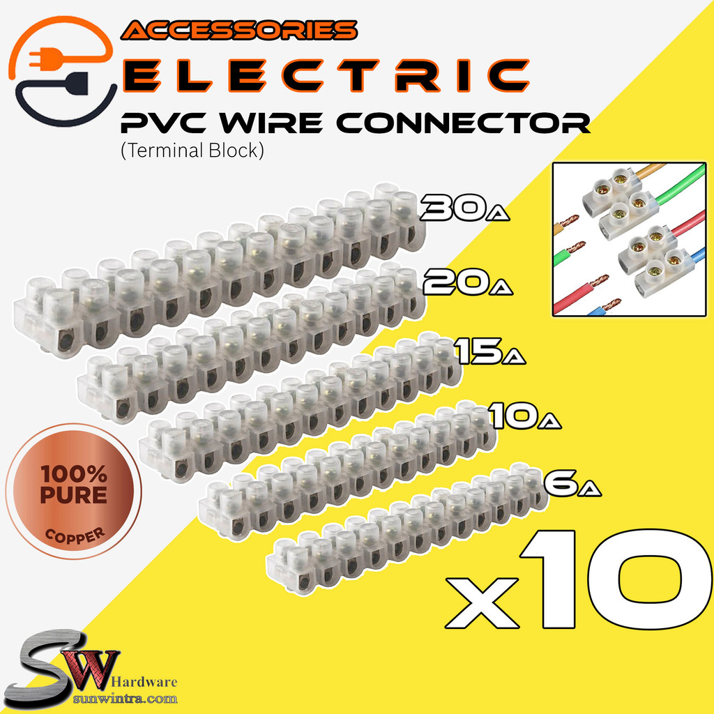 (10Pcs) 6A 10A 15A 20A 30A PVC Wire Cable connector connecter Terminal Block 12 Position Wire connector Wayar Elektrik